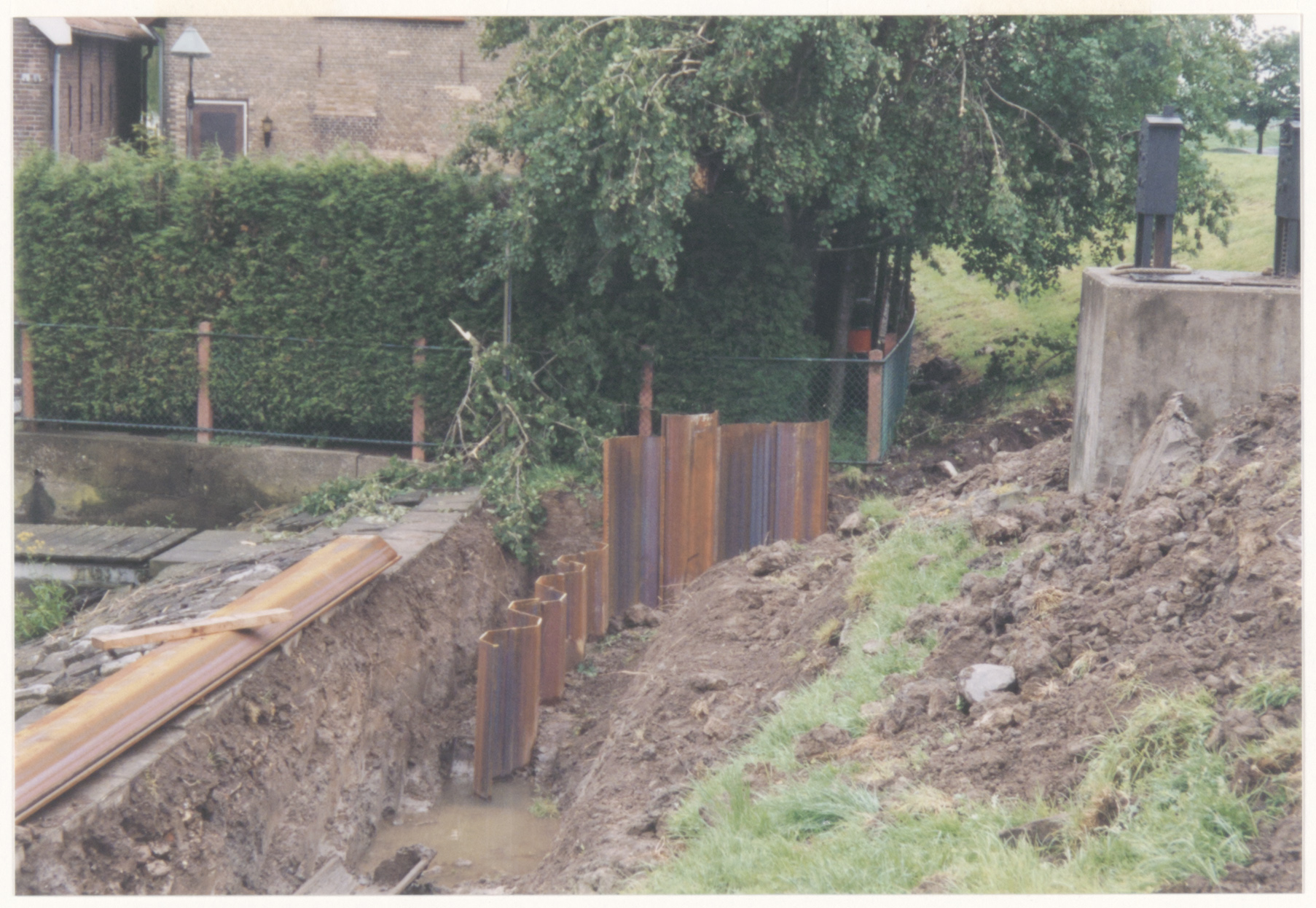 Begin van de damwandkuip bij de insteekhaven, in het talud van de Beverhoekstraat. De …