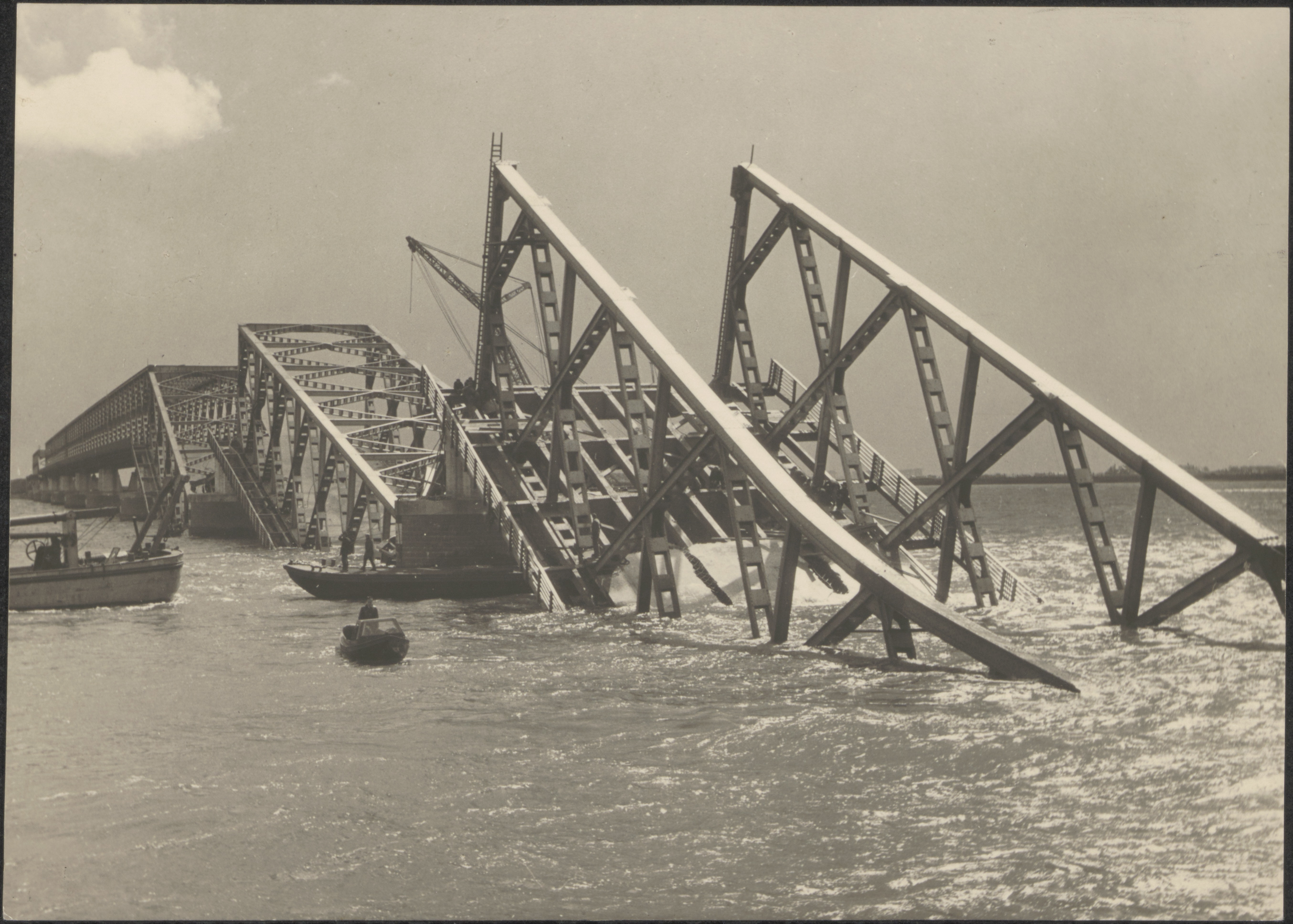 - De in de Tweede Wereldoorlog gebombardeerde verkeersbrug over het Hollandsch Diep.