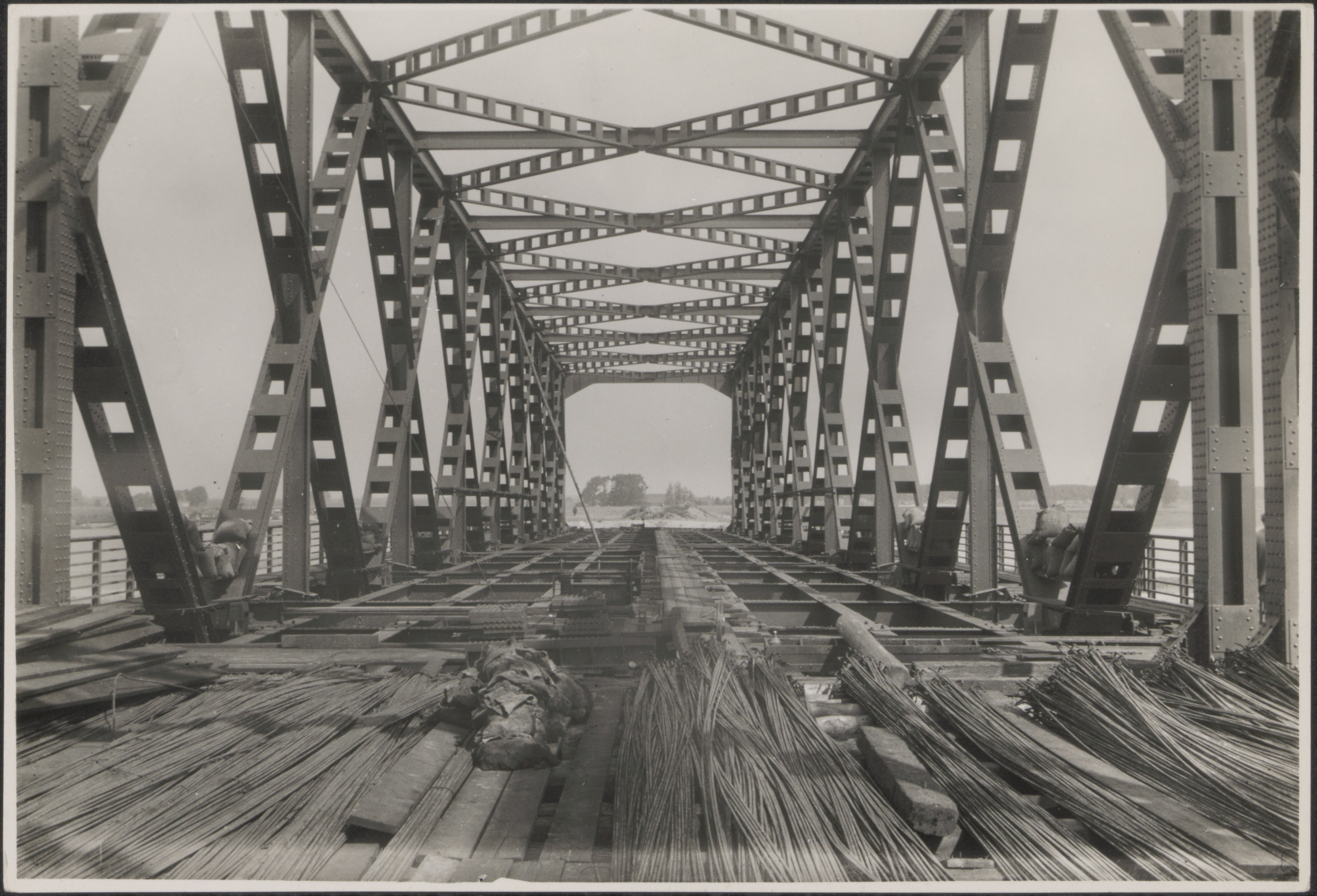 Materialen voor de afbouw liggen op het rijdek van de Moerdijkbrug.