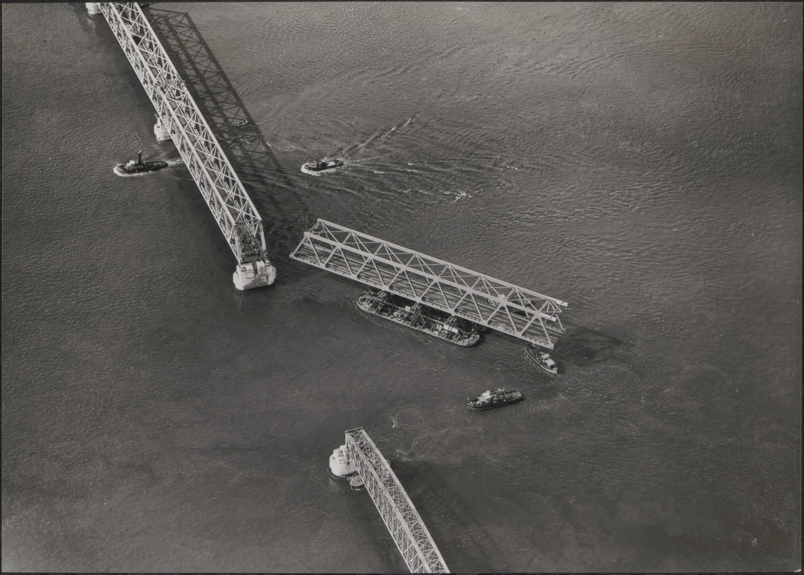 Invaren laatste brugdeel Moerdijkbrug, 1936 (volgens mij)