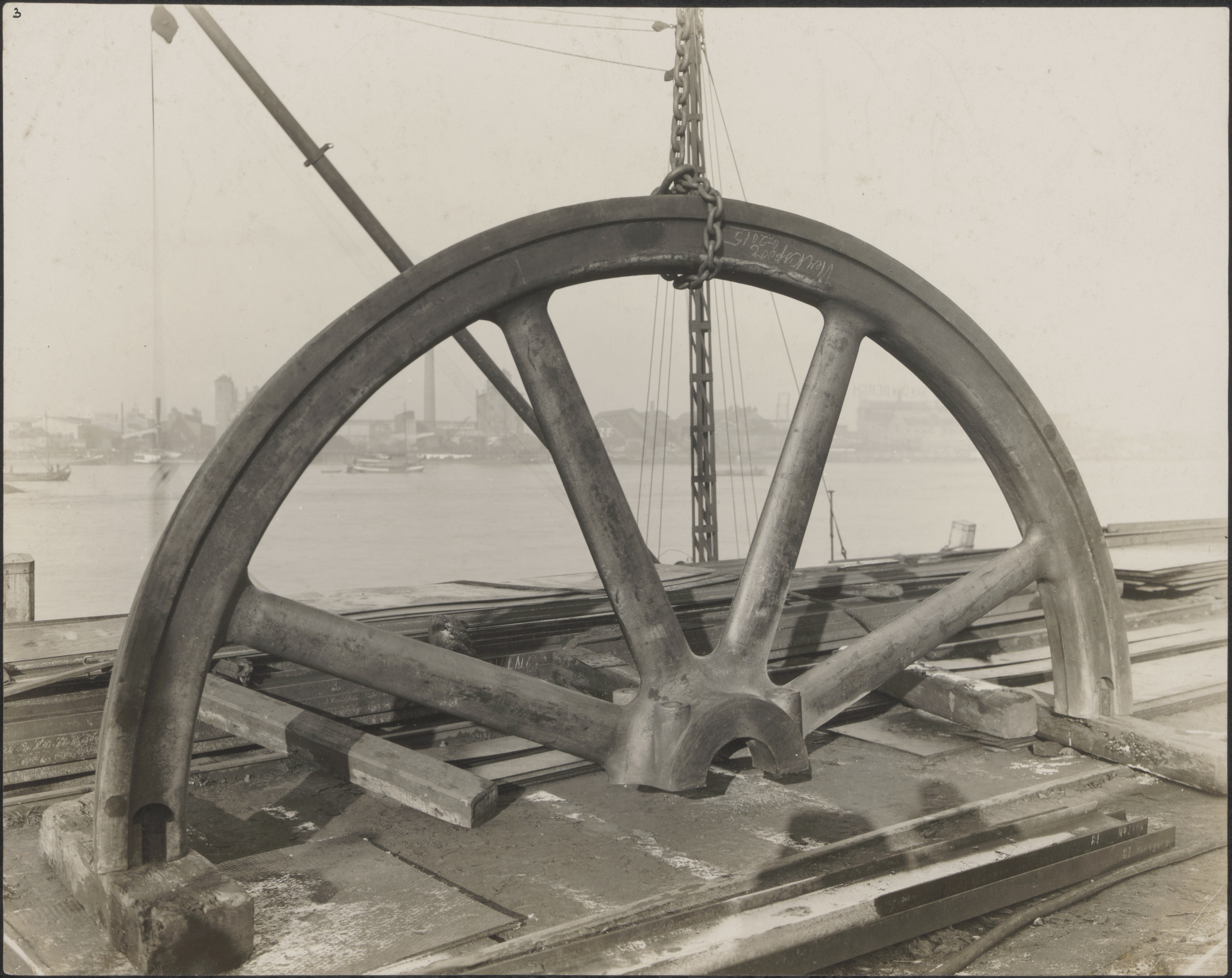 - Gietstalen helft van een wiel op de kade bij Penn & Bauduin aan de 's-Gravendeelsedijk.