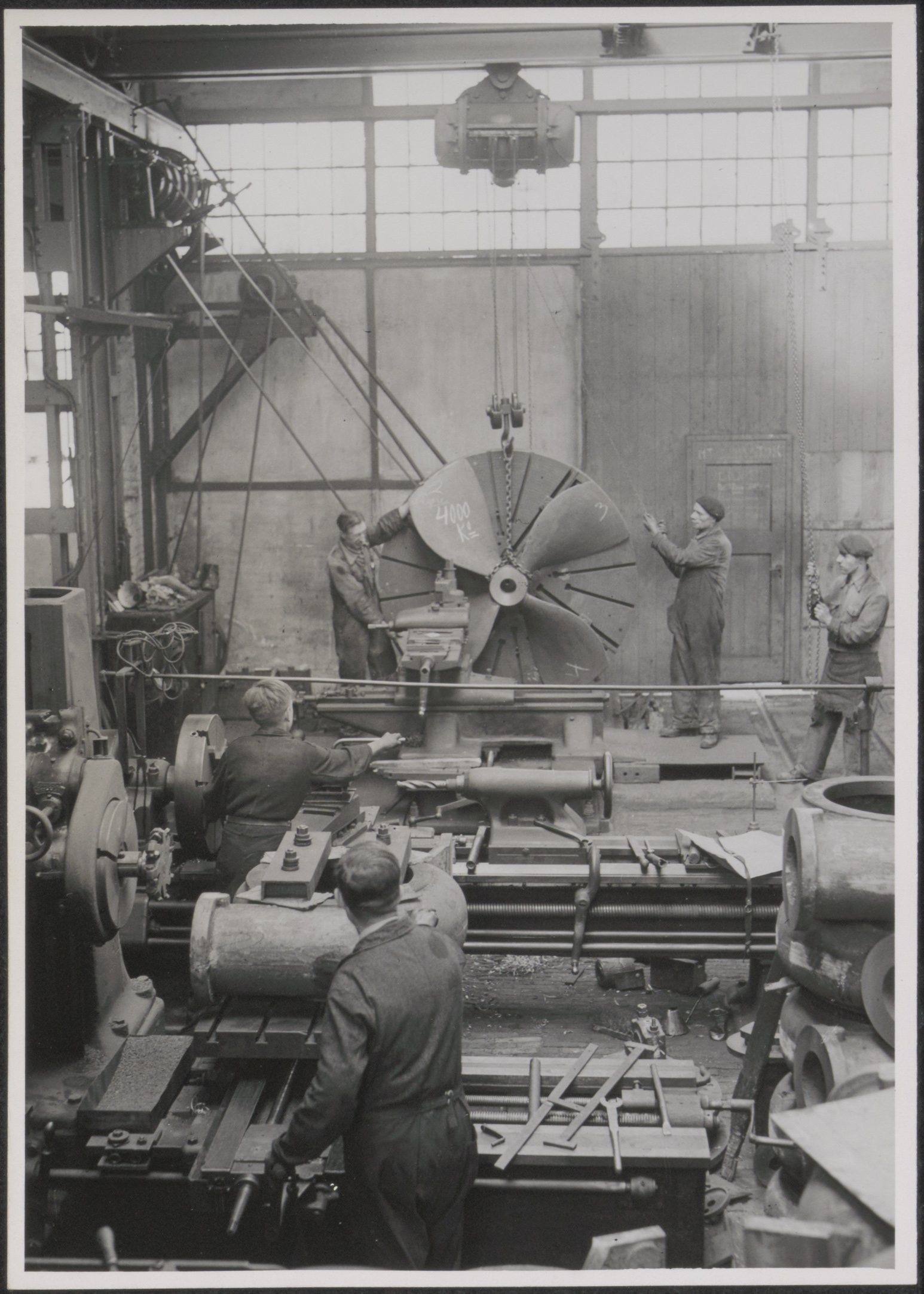 - Aankomst van een gegoten scheepsschroef voor verdere bewerking op de afdeling machinale bewerking bij Penn & Bauduin aan de 's-Graveneelsedijk.