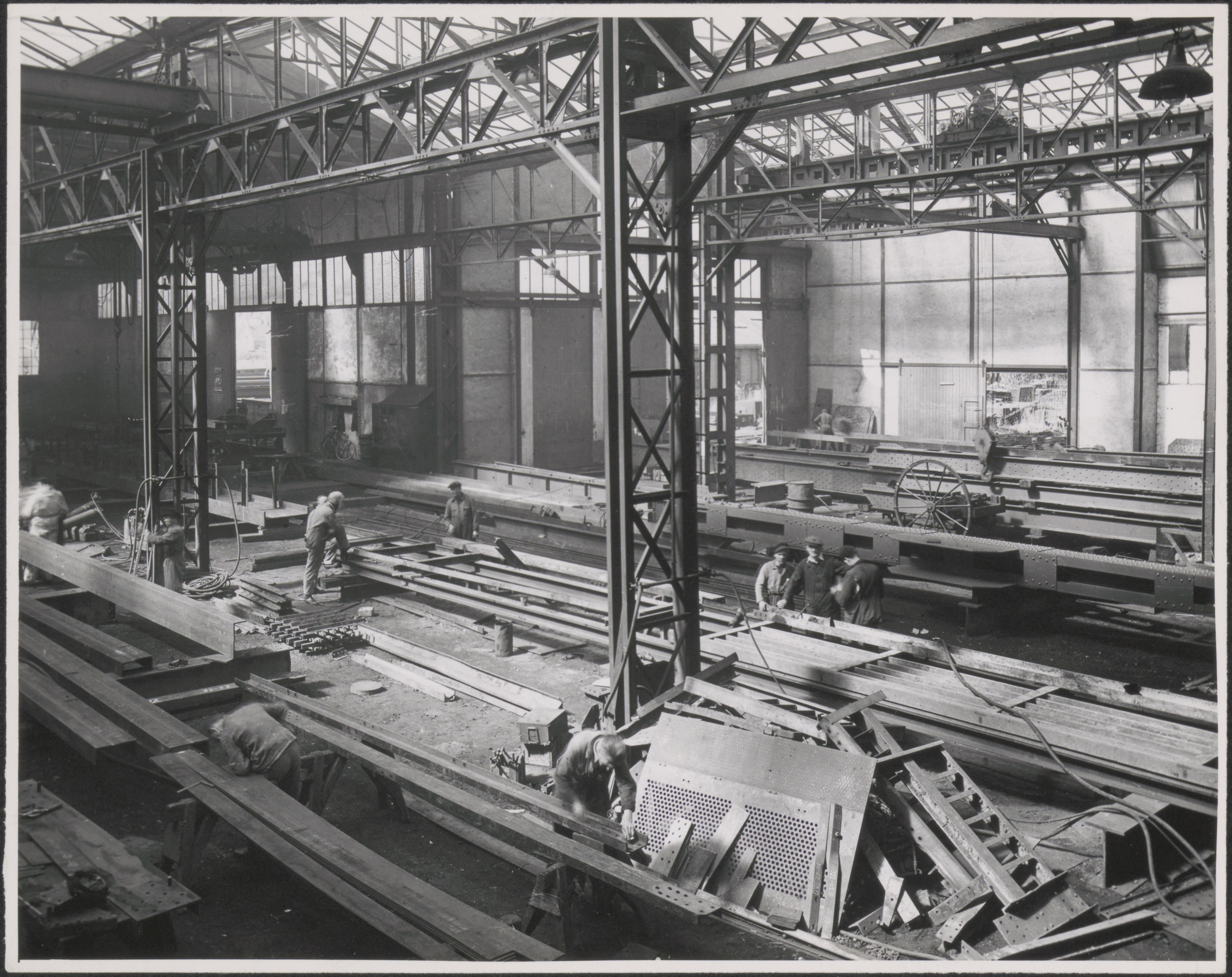Afdeling voorbewerking in een constructiehal bij Penn & Bauduin aan de …