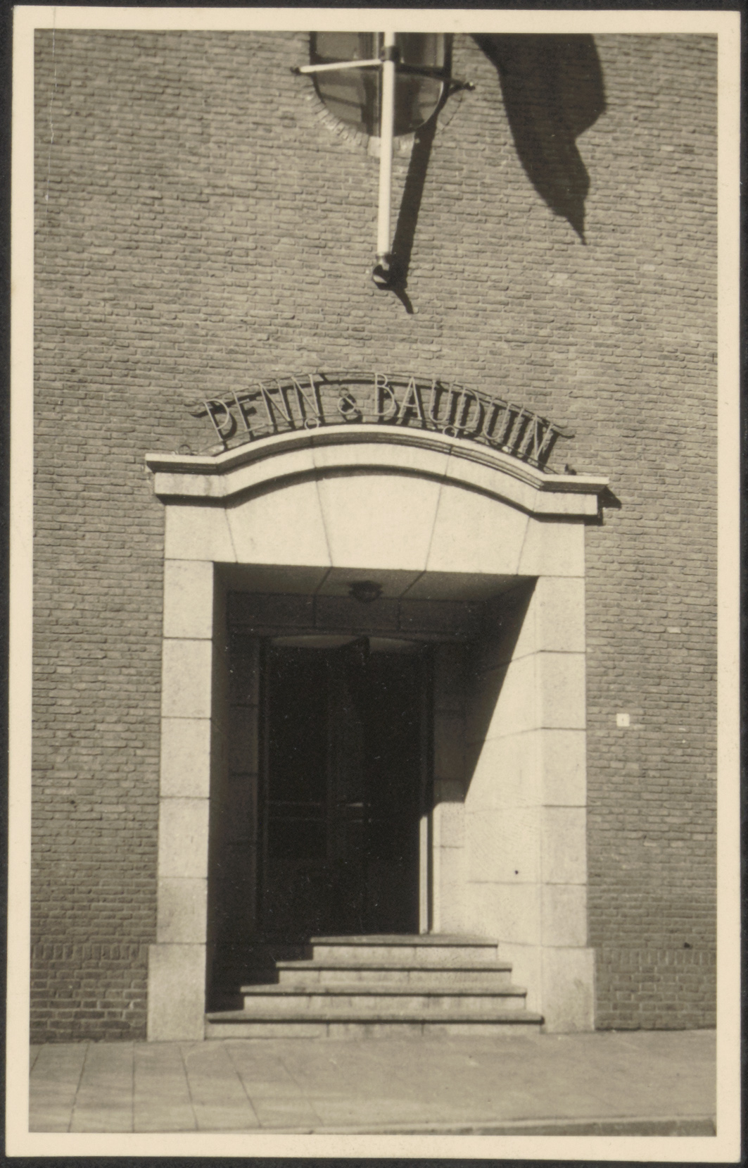 Ingang van het kantoorgebouw van Penn & Bauduin op de hoek 's-Graveneelsedijk / …