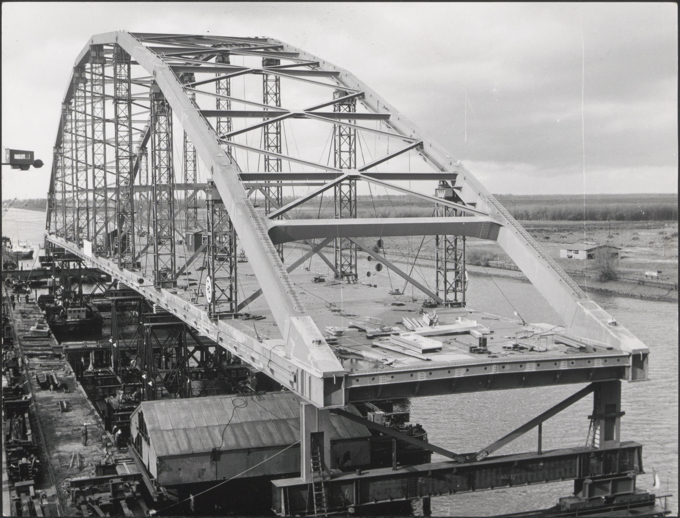 De bij Penn & Bauduin aan de 's-Gravendeelsedijk gebouwde Papendrechtse brug is vanaf …