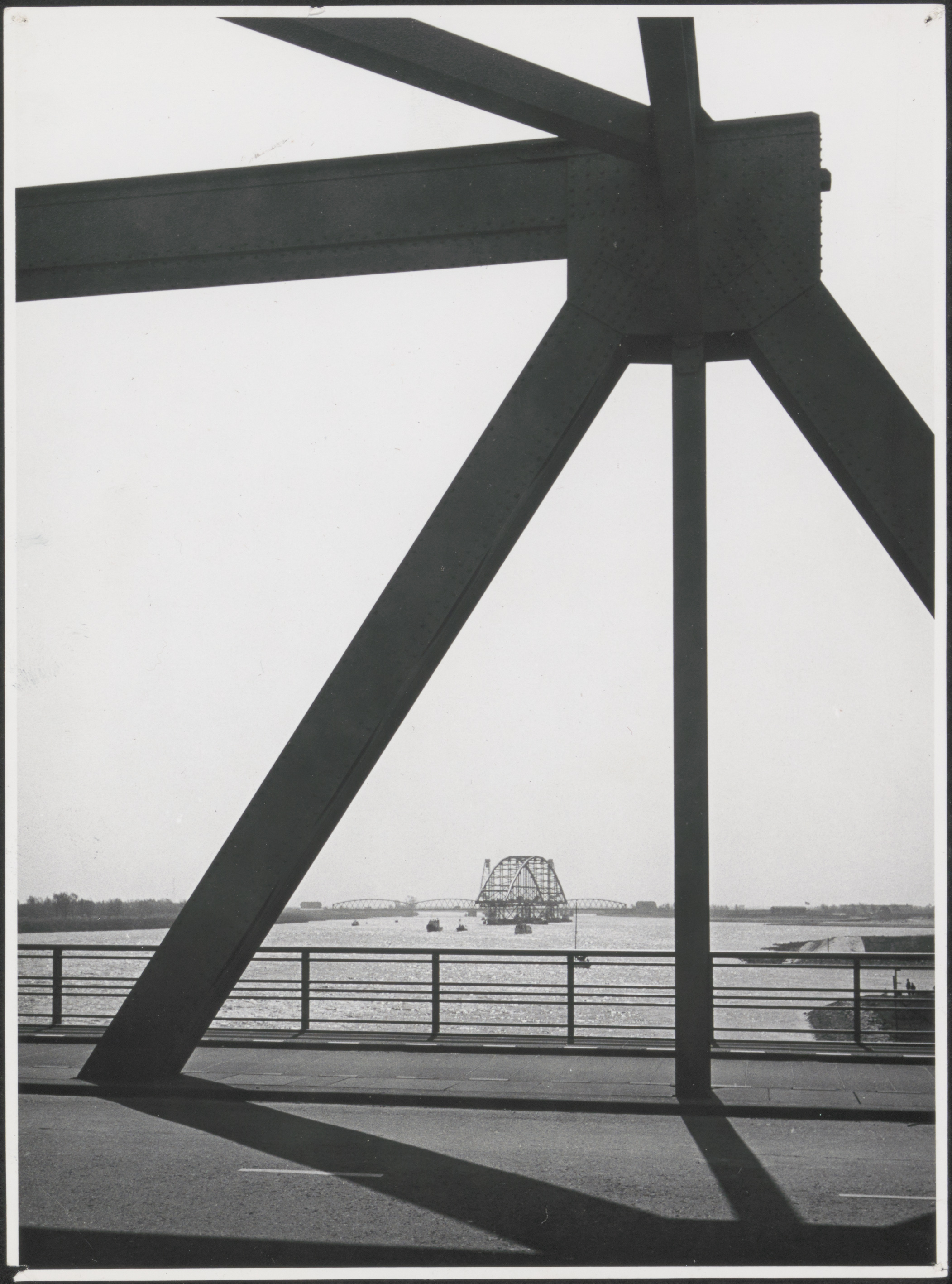 Vervoer van de Papendrechtse brug vanaf de werf van Penn & Bauduin via Rotterdam naar de Beneden Merwede.