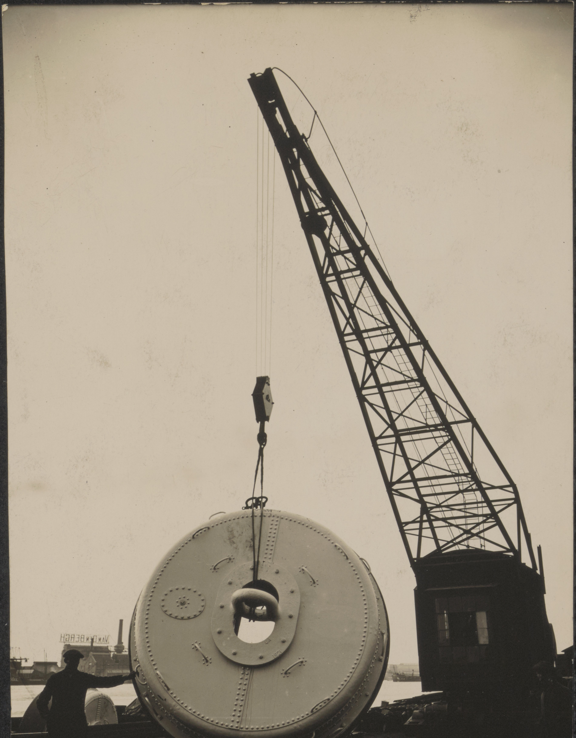 - Laden van het transport van bij Penn en Bauduin aan de 's-Gravendeelsedijk vervaardigde boei voor de zeescheepvaart.