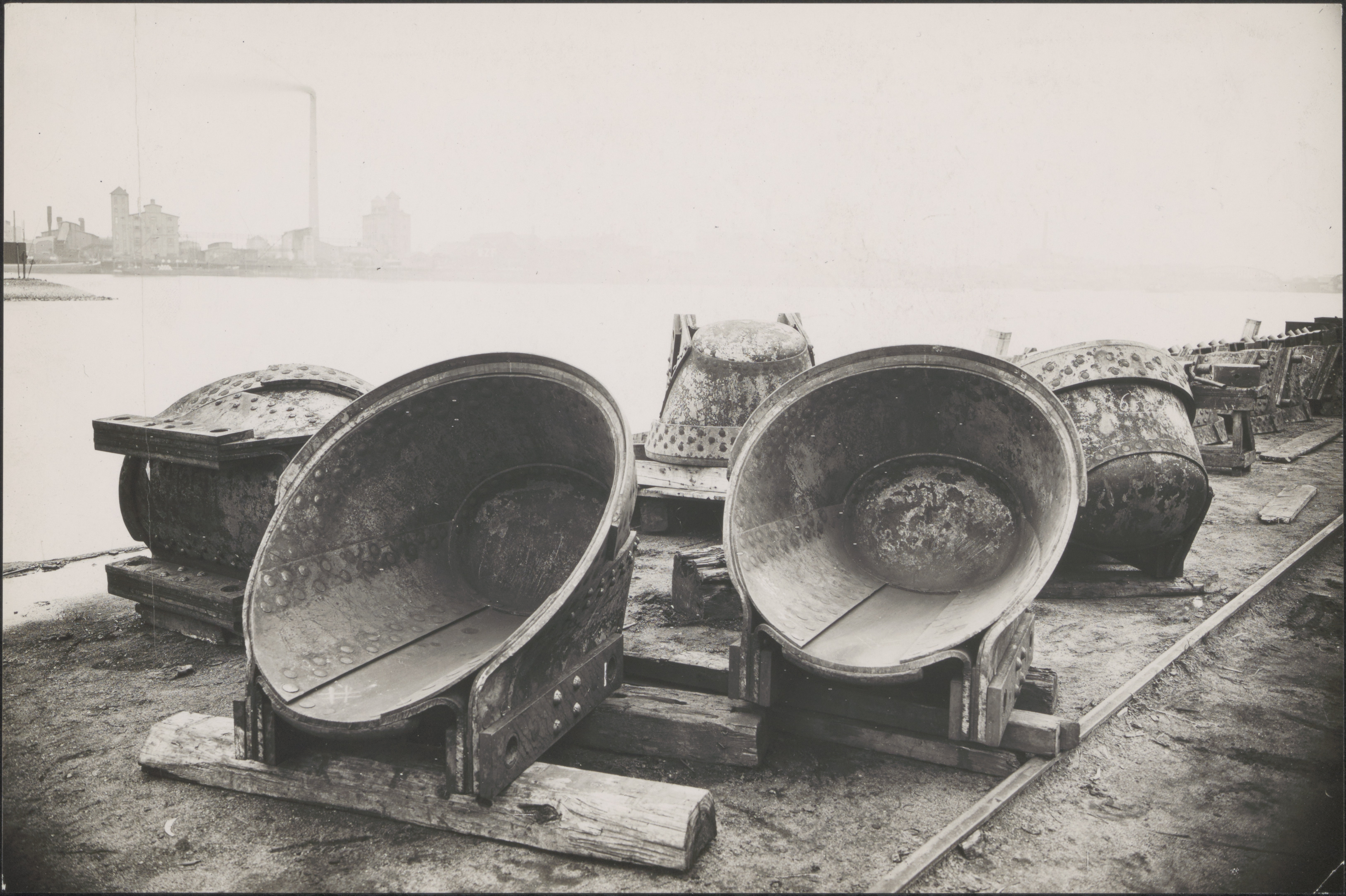 Bij Penn en Bauduin aan de 's-Gravendeelsedijk vervaardigde bakken voor een baggermolen.