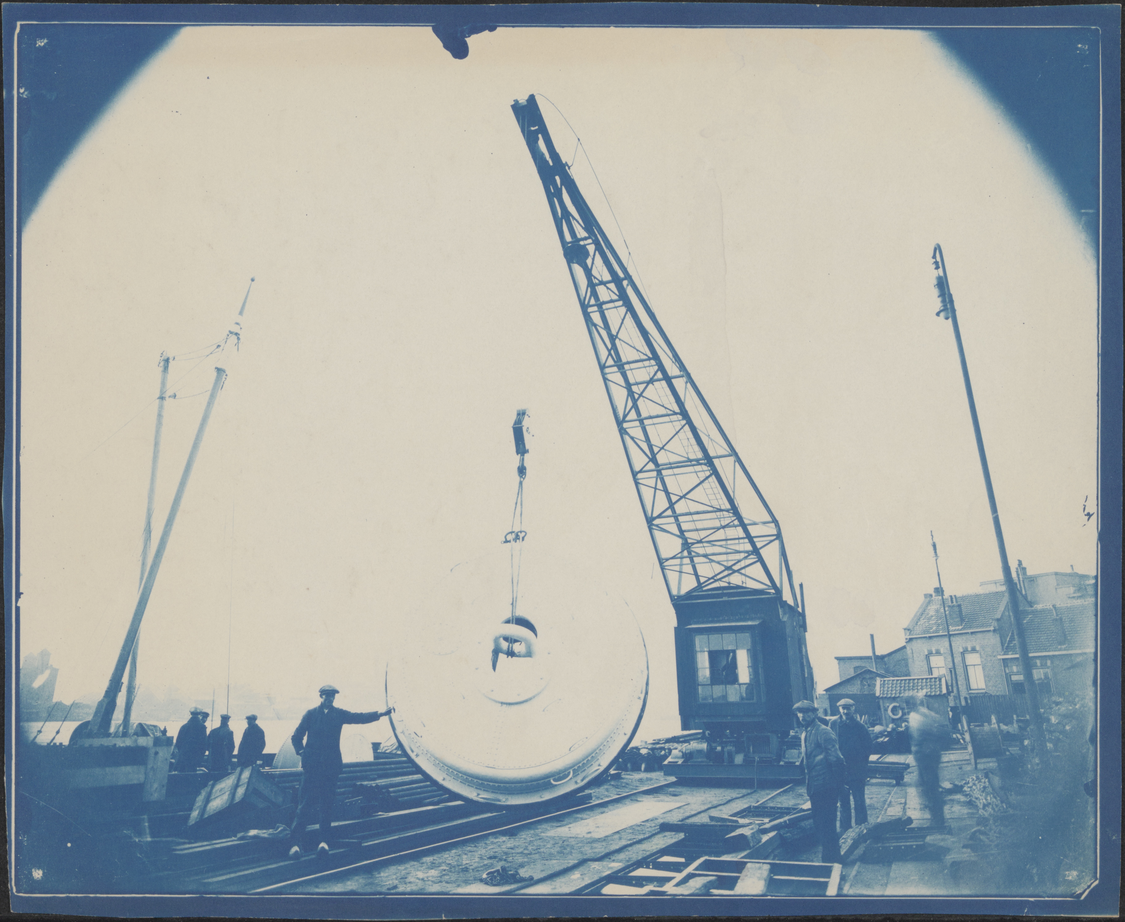 - Meerboei in de takels op de werf van Penn & Bauduin aan de ‘s-Gravendeelsedijk.