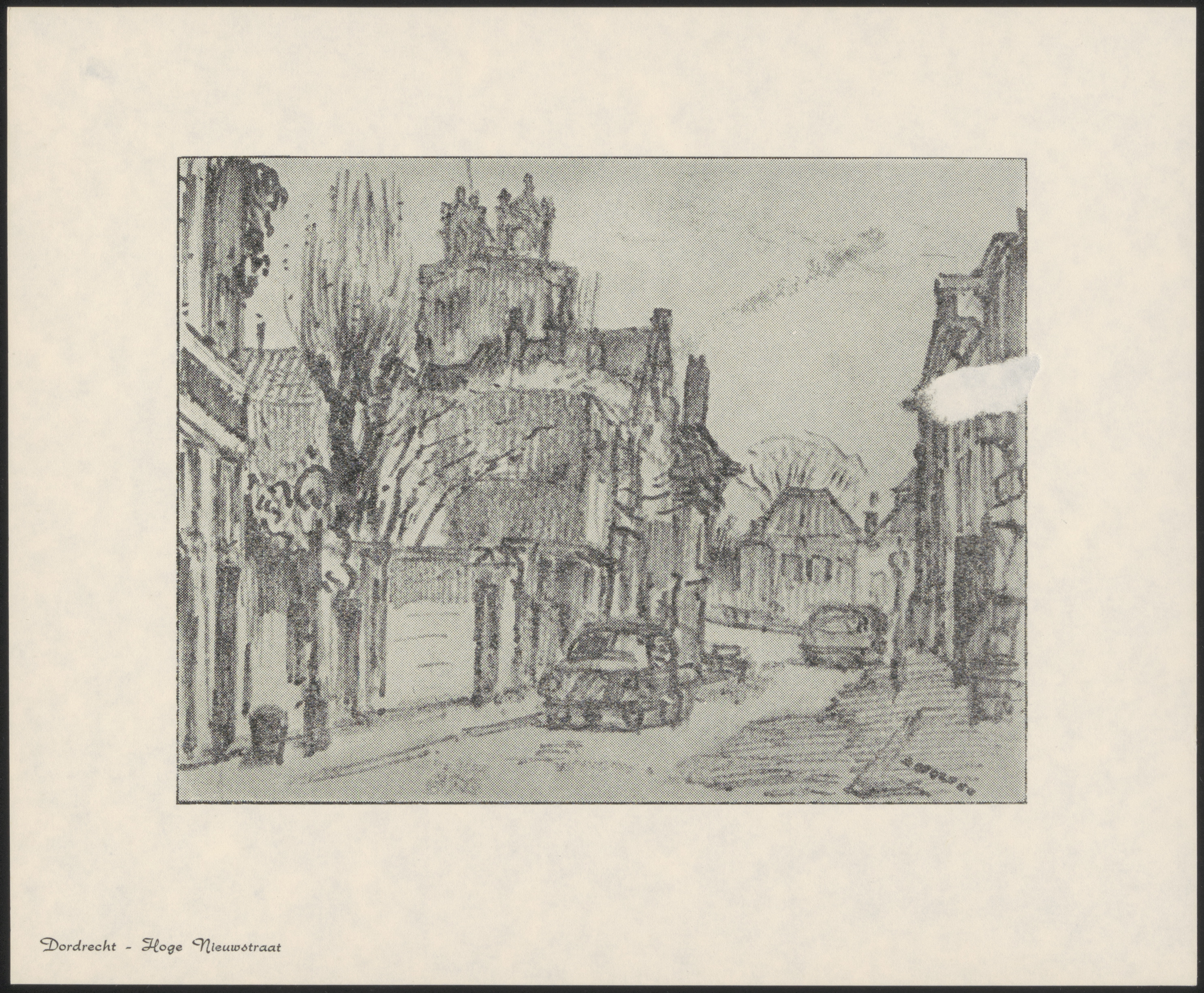 [Noltee tekent Dordrecht, 10 reproducties naar tekeningen van de Dordrechtse kunstschilder Cor Noltee] Hoge Nieuwstraat