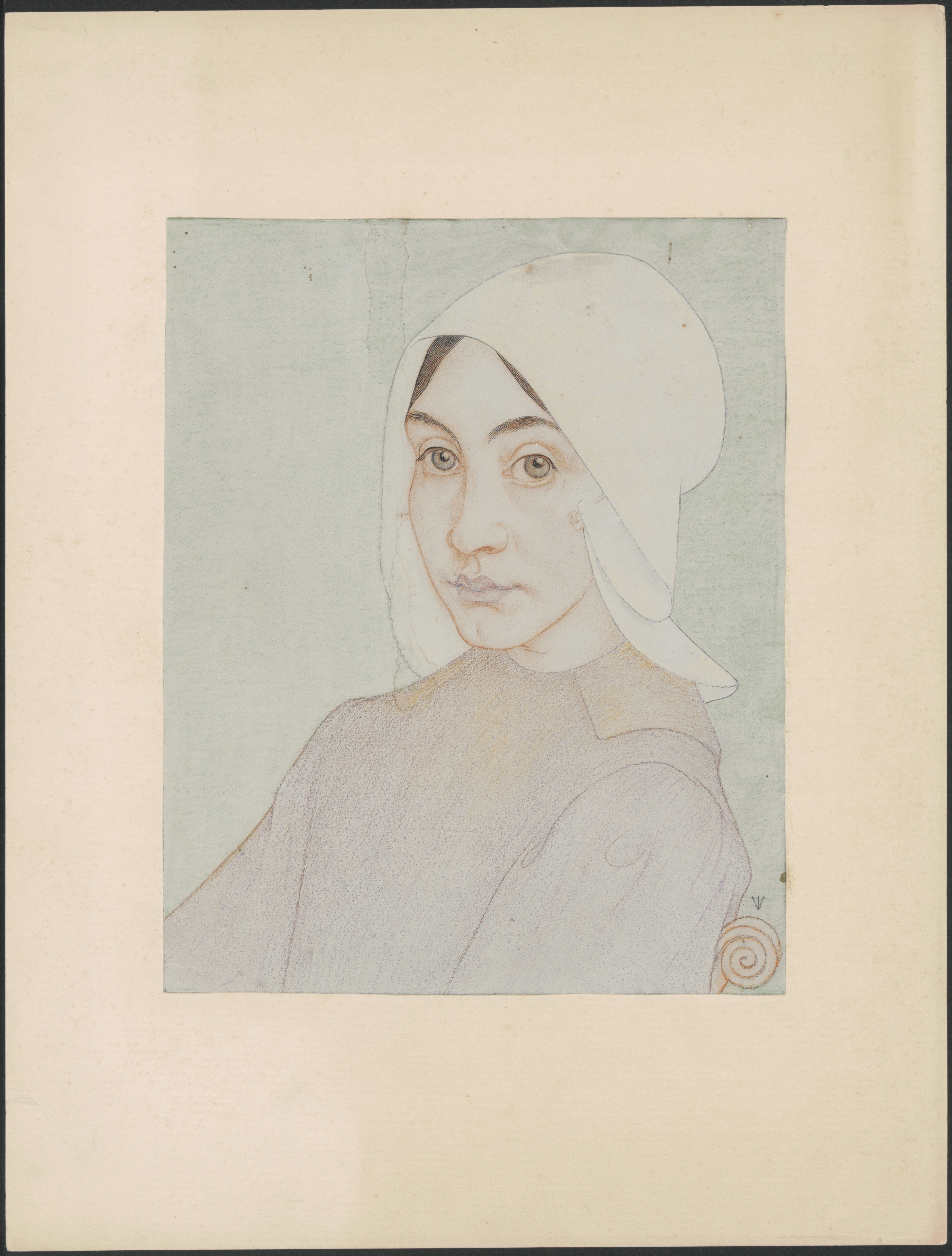 Karen is de hoofdpersoon uit Hans Christian Andersens sprookje De rode schoentjes. Het model dat voor Karen poseerde heette eigenlijk Heintje. Heintje was een meisje uit Huizen, "waar het Spaanse bloed nog in herkenbaar was", zoals Henriëtte Roland Holst haar beschrijft "een brunette, met donkere, als gepenseelde wenkbrauwen en bloedrood zwellende lippen". Veth portretteerde haar een jaar eerder al in een geheel andere, meer dromerige stijl, toen nog beïnvloed door Matthijs Maris, die hij in dat jaar in Londen had bezocht. In het hier besproken werk beeldt hij haar echter heel anders af: sterk gestileerd en in zekere zin ook gedepersonaliseerd. Het meisje kijkt de toeschouwer met grote donkere ogen bijna argeloos aan. Haar edele uitstraling doet denken aan renaissance-schilders als Hans Holbein de Jonge en Giorgione. Dezelfde gerichtheid op het decoratieve is ook te zien in een steendruk van Heintje/Karen uit 1893, opgenomen in de "Portefeuille der Nederlandsche Etsclub", waar alleen haar hoofd met de witte muts is afgebeeld. Veth omlijstte dit vierkante, lithografische portret met een elegant ornament van ranken en bladeren die doen denken aan schakels van een halssnoer. Dit soort vlak-decoratieve, op synthetische eenvoud gerichte portretten zijn redelijk uitzonderlijk binnen het oeuvre van Veth en dateren vrijwel uitsluitend uit de periode 1892-1893, toen hij sterk onder invloed stond van zijn toenmalige vriend Richard Roland Holst.