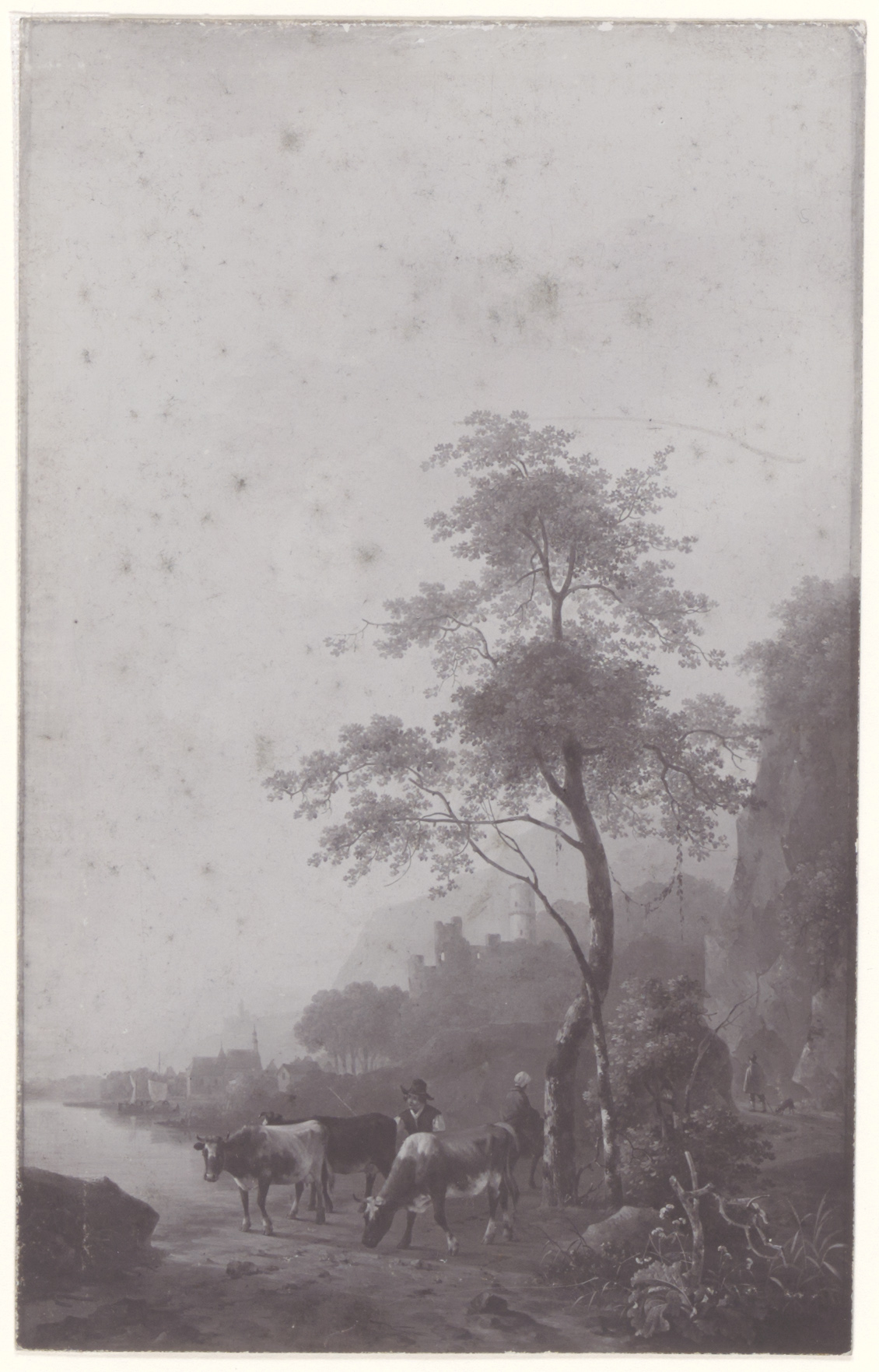 - Schilderij door Hendrik Frederik Verheggen van drinkende koeien in een rivier.