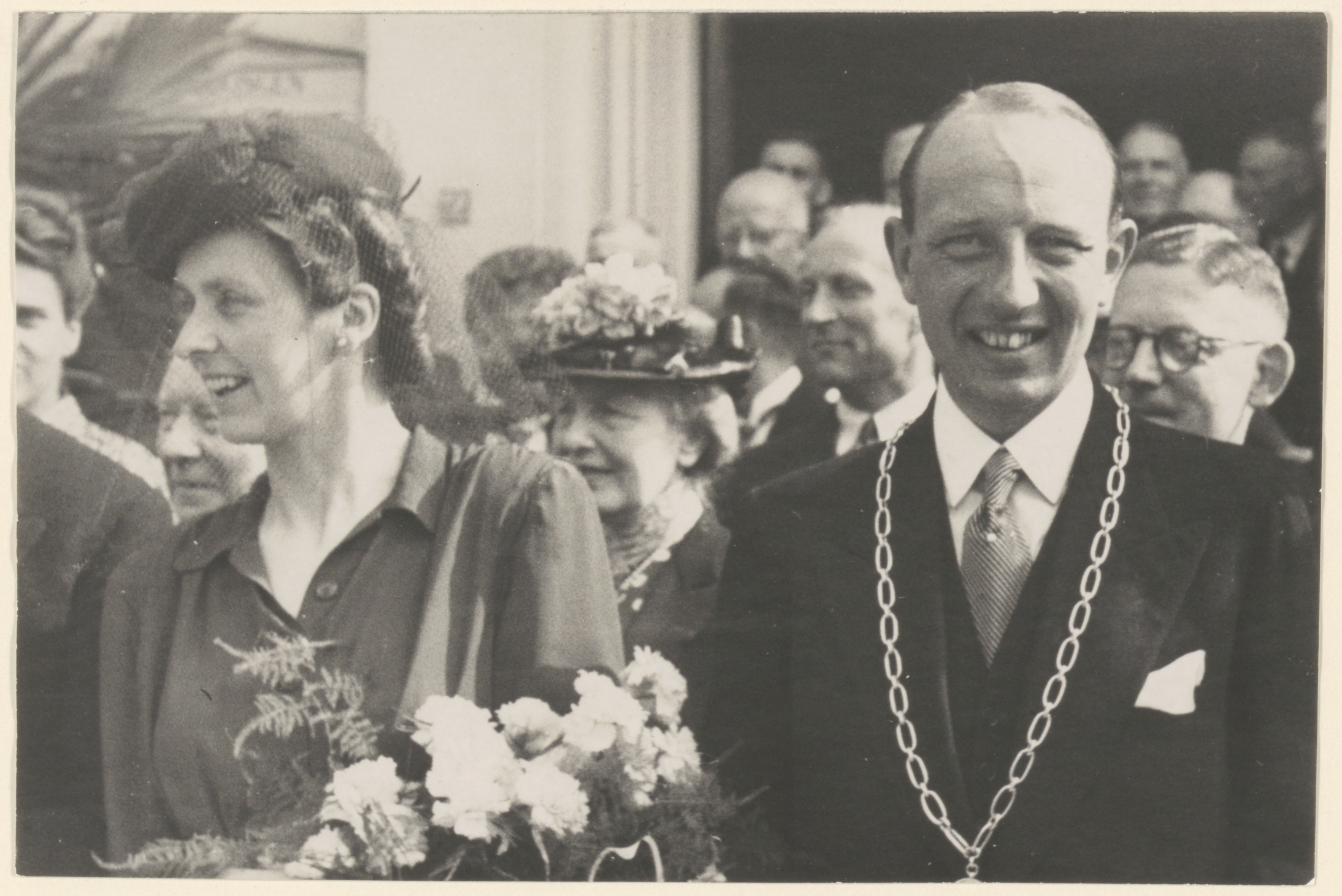 - J.P.M.Beelaerts van Emmichoven en zijn echtgenote tijdens zijn installatie als burgemeester van Dubbeldam.