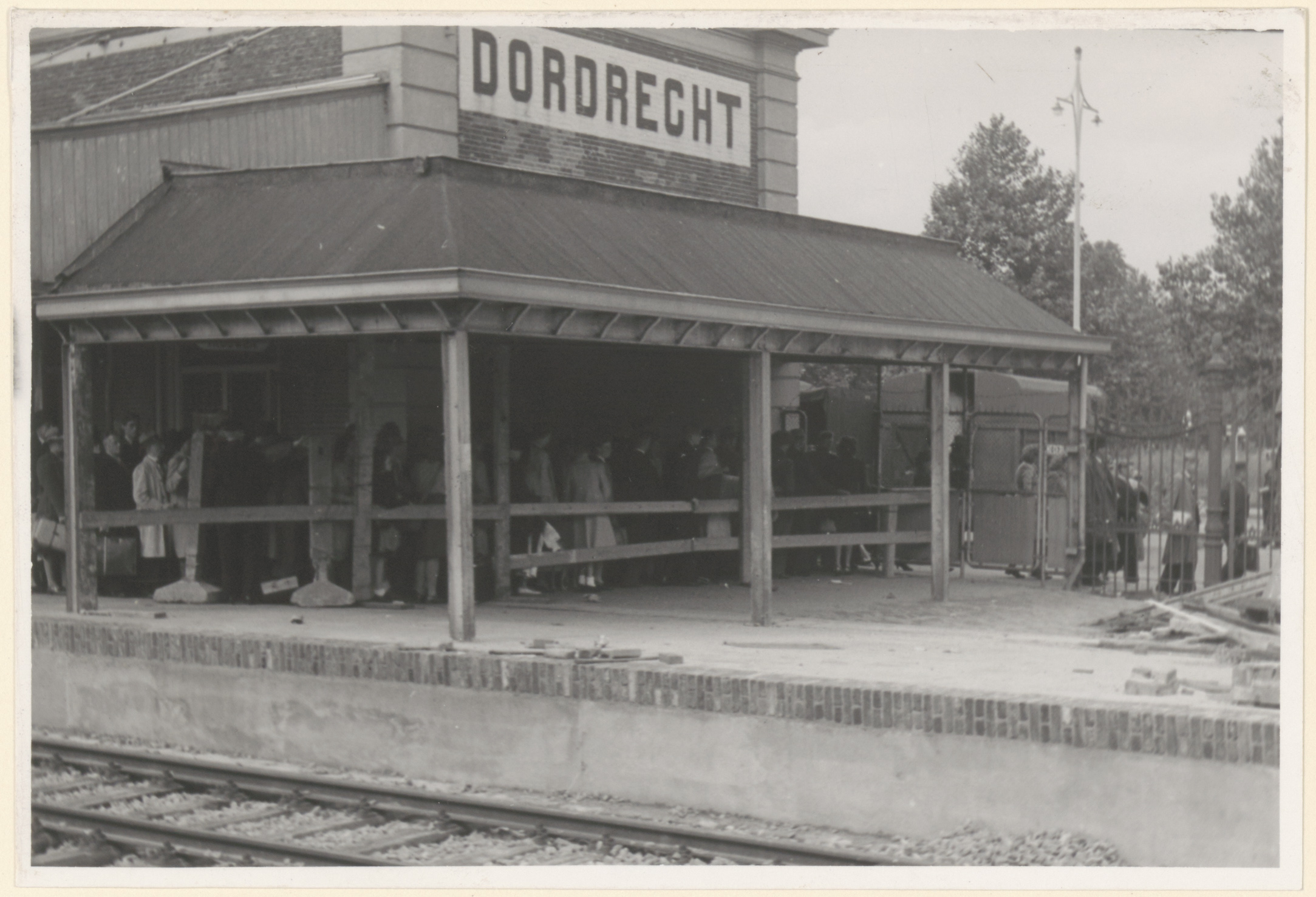 - Treinreizigers in de rij op perron 1 bij de uitgangscontrole