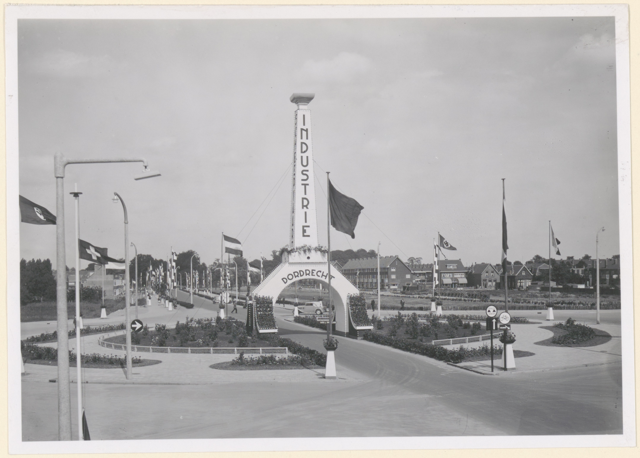 - Zuil op het Hugo de Grootplein tijdens de brugfeesten bij de opening van de verkeersbrug over de Oude Maas.