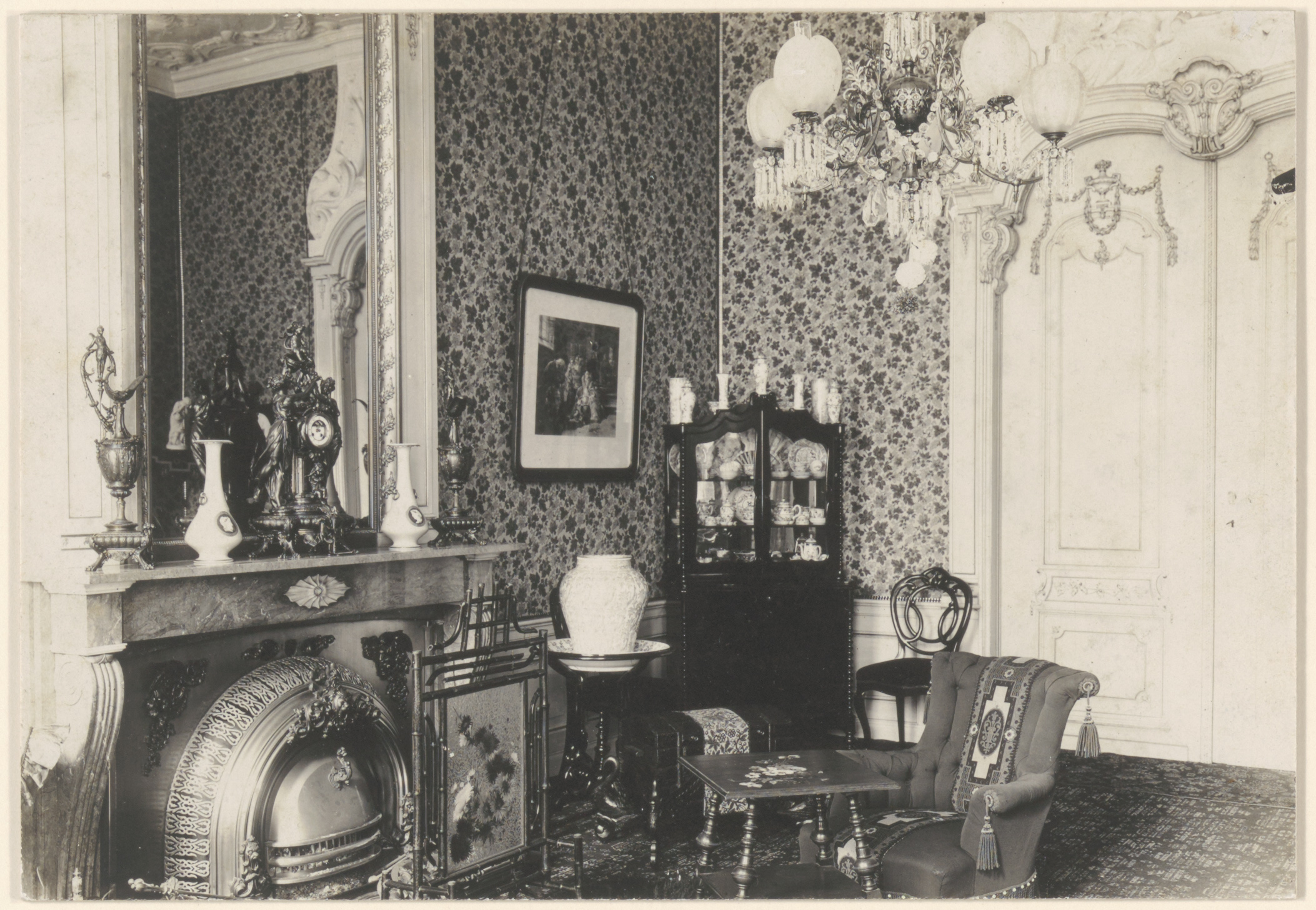 - haarden / (gas)kachels huiskamers interieurs kroonluchters meubels patriciërshuizen schoorsteenmantels / schouwen spiegels