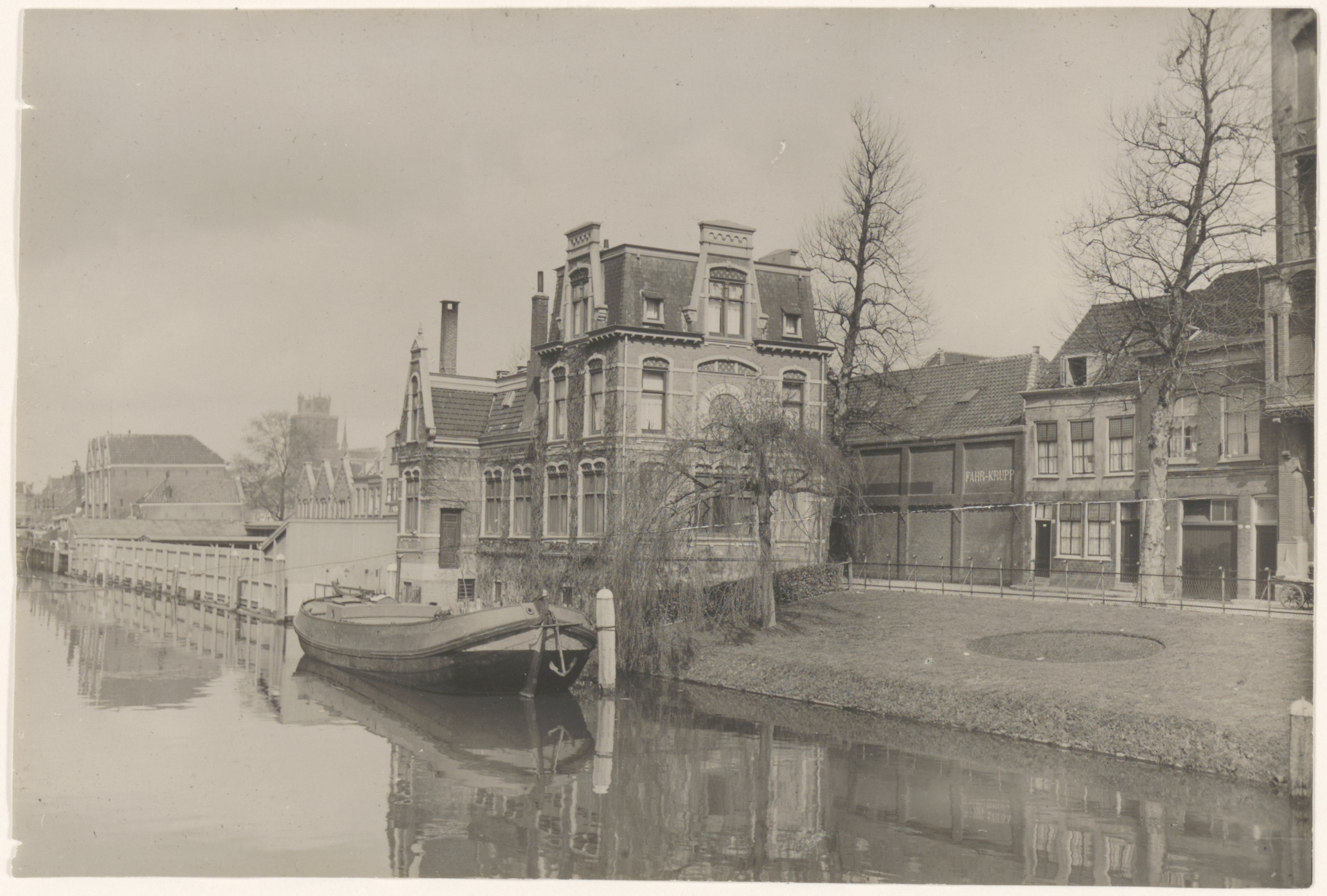 - Het Volksbadhuis aan de Vest en de Gemeente Zwemschool langs de Spuihaven, gezien vanaf de Johan de Wittbrug.