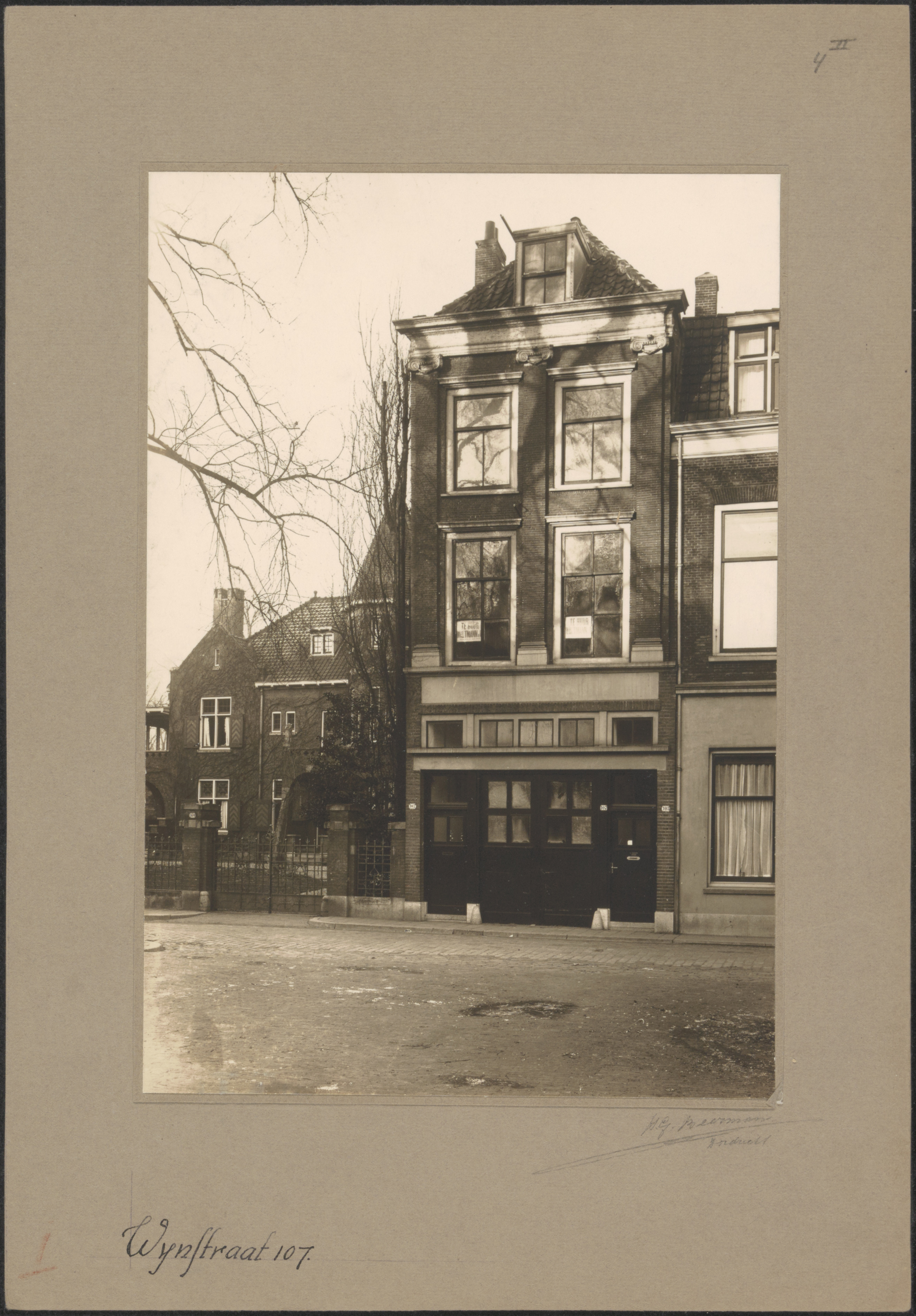 - De westzijde van de Wijnstraat ter hoogte van de Botermarkt. Links de villa van Lotsy.
