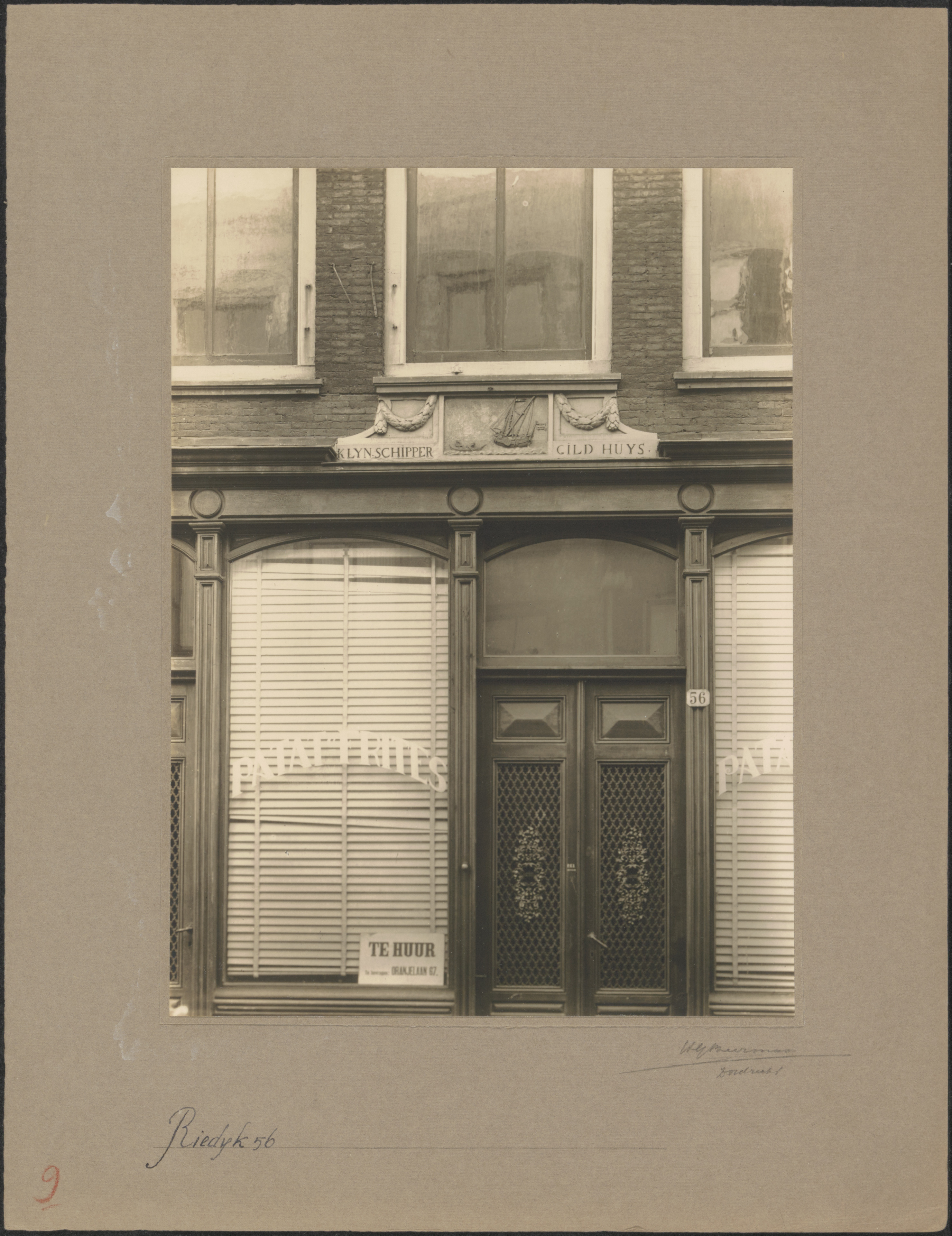 - Riedijk 102 (nr. in 1987) met gevelsteen 'Klyn schipper gild huys'.