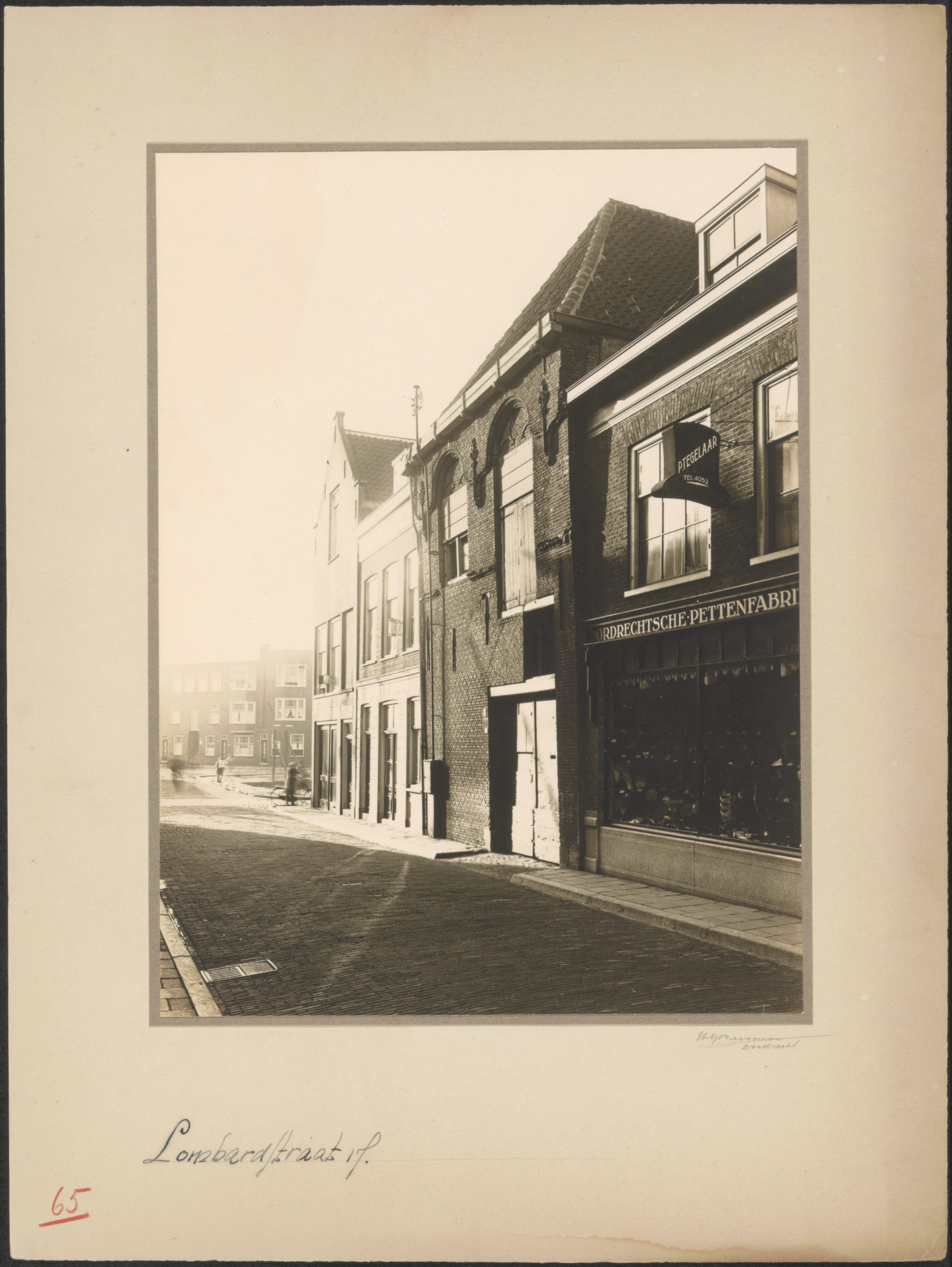 De nog niet gebouwde woningen in het hier zichtbare deel van de verlengde Lombardstraat hebben 1935 als bouwjaar. Verder staat er in de rand van het origineel 556_1168 "Lombardstraat 17". Het lijkt er dus inderdaad op dat de totstandkoming van de foto betrekking heeft op datgene wat Angenetha Balm-Kok aanhaalt. Verder vond ik niet zoveel over dit pand, eigenlijk alleen het onderstaande. Dordrechtsche Courant, 21-8-1889: "KENNISGEVING. VERGUNNING tot OPRICHTING van eene slachterij. De BURGEGEMEESTER en WETHOUDERS van DORDRECHT, gelet op art. 8 der Wet van den 2 Juni 1875 (Staatsblad N0. 95); brengen ter algemeene kennis: dat op heden aan G. F. BRAUN en zijne rechtverkrijgenden vergunning is verleend tot oprichting van eene slachterij, in het pand aan de Lombardstraat n°. 15 alhier, Kadastraal bekend onder n°. 36 van sectie H. Dordrecht, den 19 Augustus 1889. De Burgemeester enz enz."