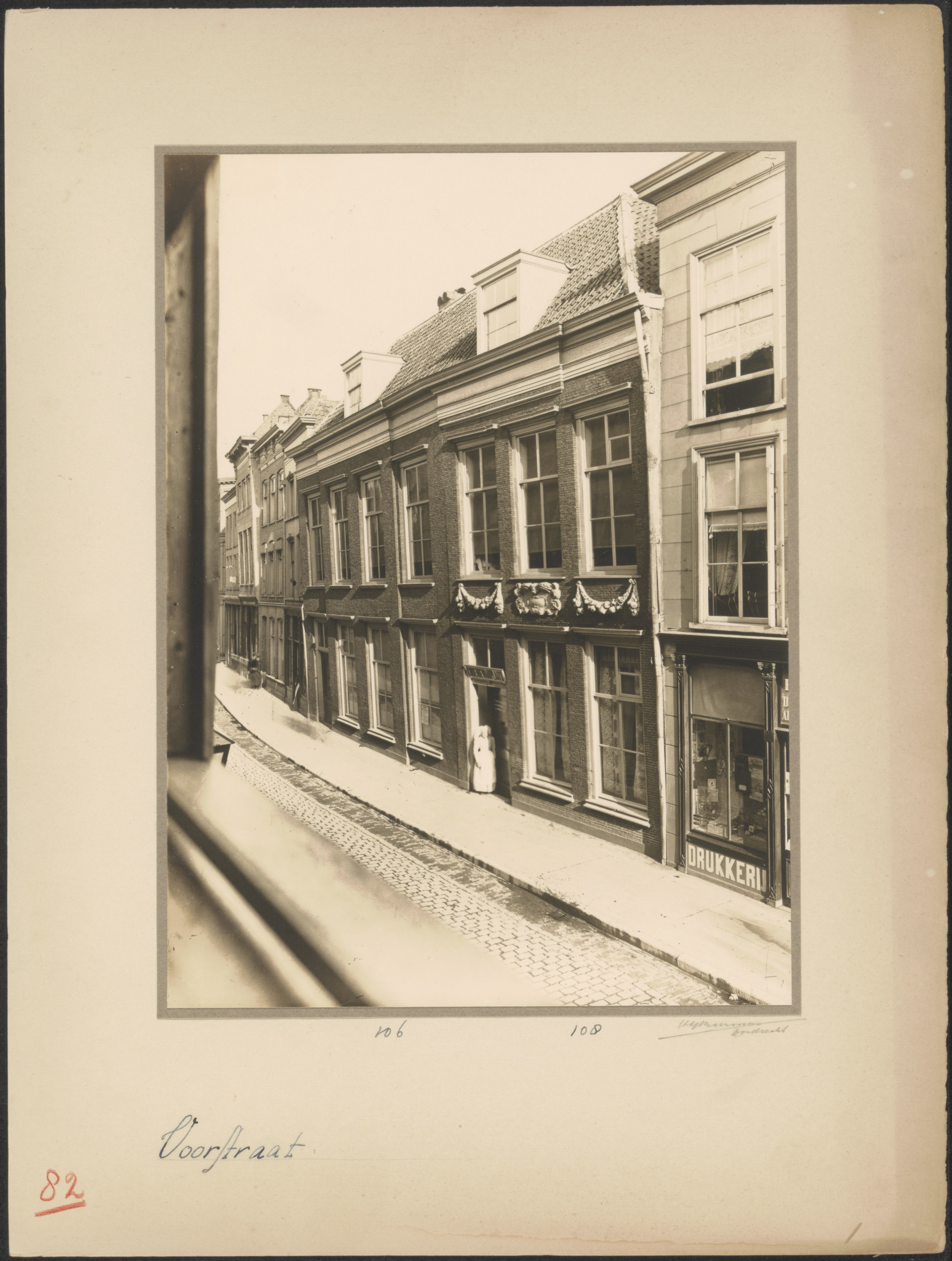 - Een drukkerij en de kinderbewaarplaats op de Voorstraat, gezien richting Riedijk.