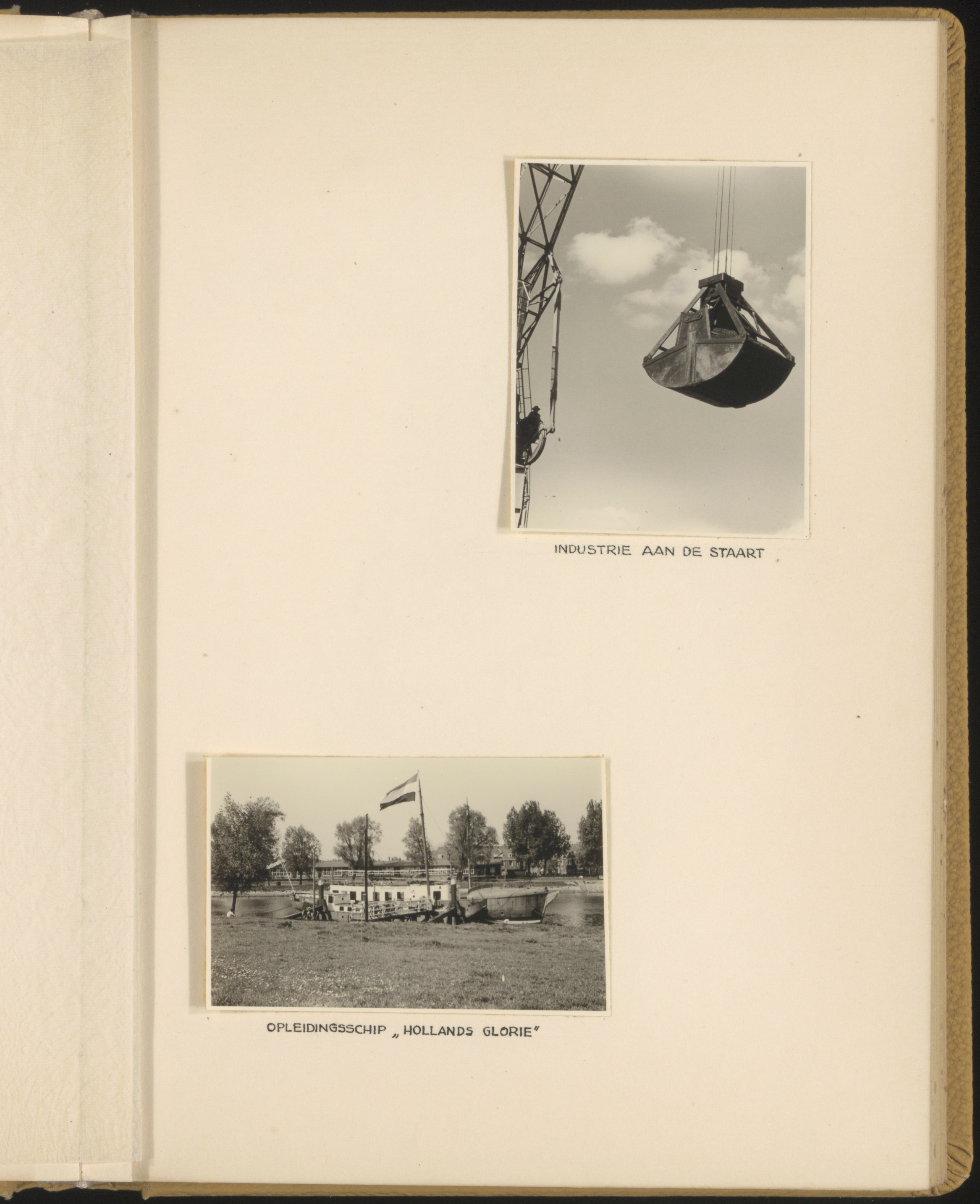 - Boven: grijper van een hijskraan. Onder: opleidingsschip Hollands Glorie in het Wantij, afgemeerd aan de Badweg.