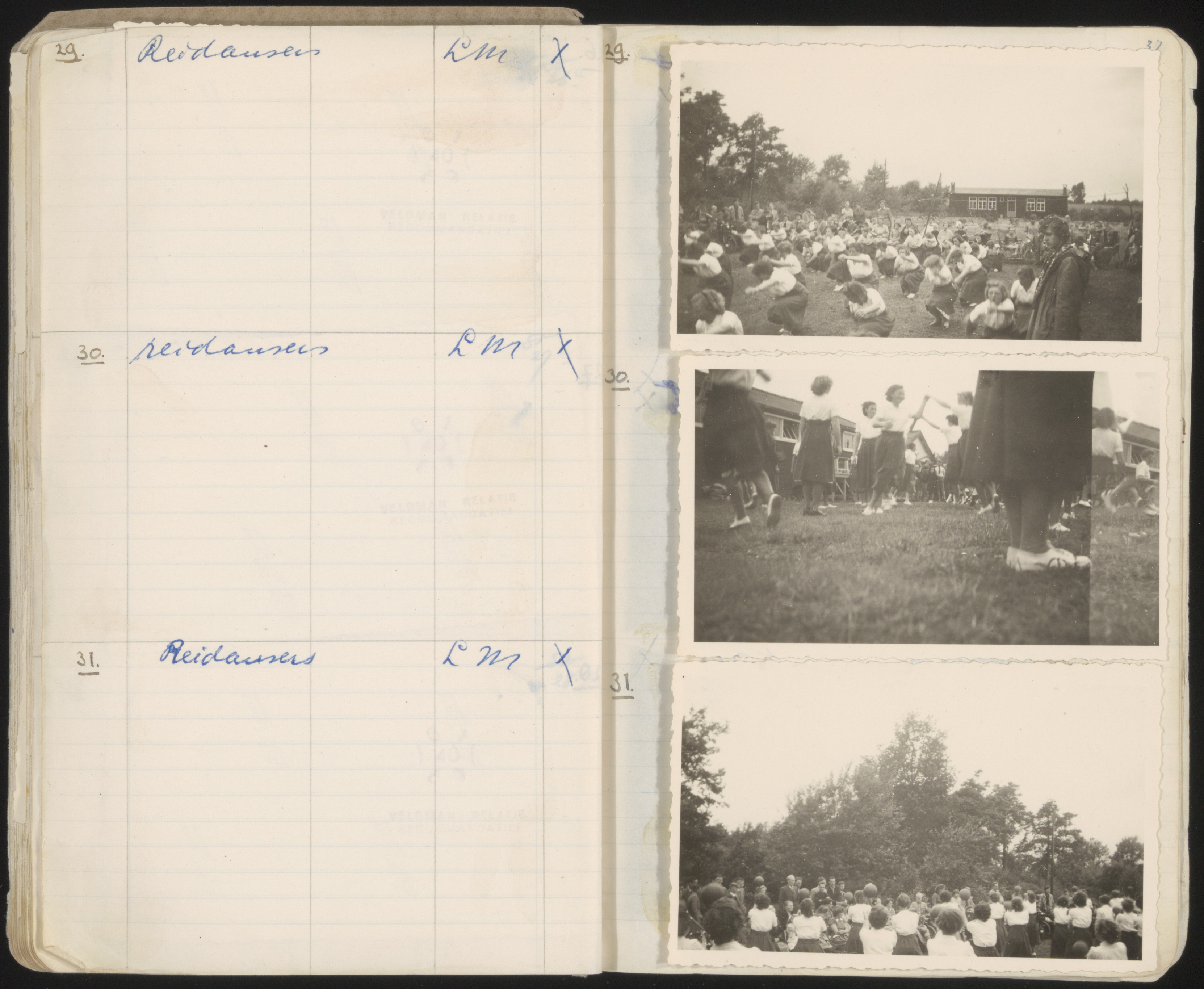Links: Nabestellingen van foto's. Rechts: Volksdansers in een kamp gehouden van 3 t/m …