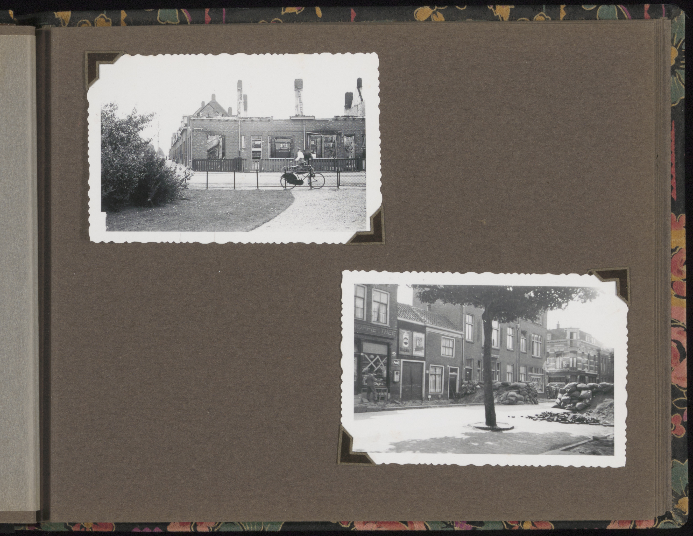 - Boven: vernielde huizen door beschietingen in de Tweede Wereldoorlog op de hoek Crayensteynstraat (links) - Houweningestraat. Onder: opgeworpen verdediging van Nederlandse militairen op de Albert Cuypsingel nabij kruising Spuiweg / Van Strijsingel.