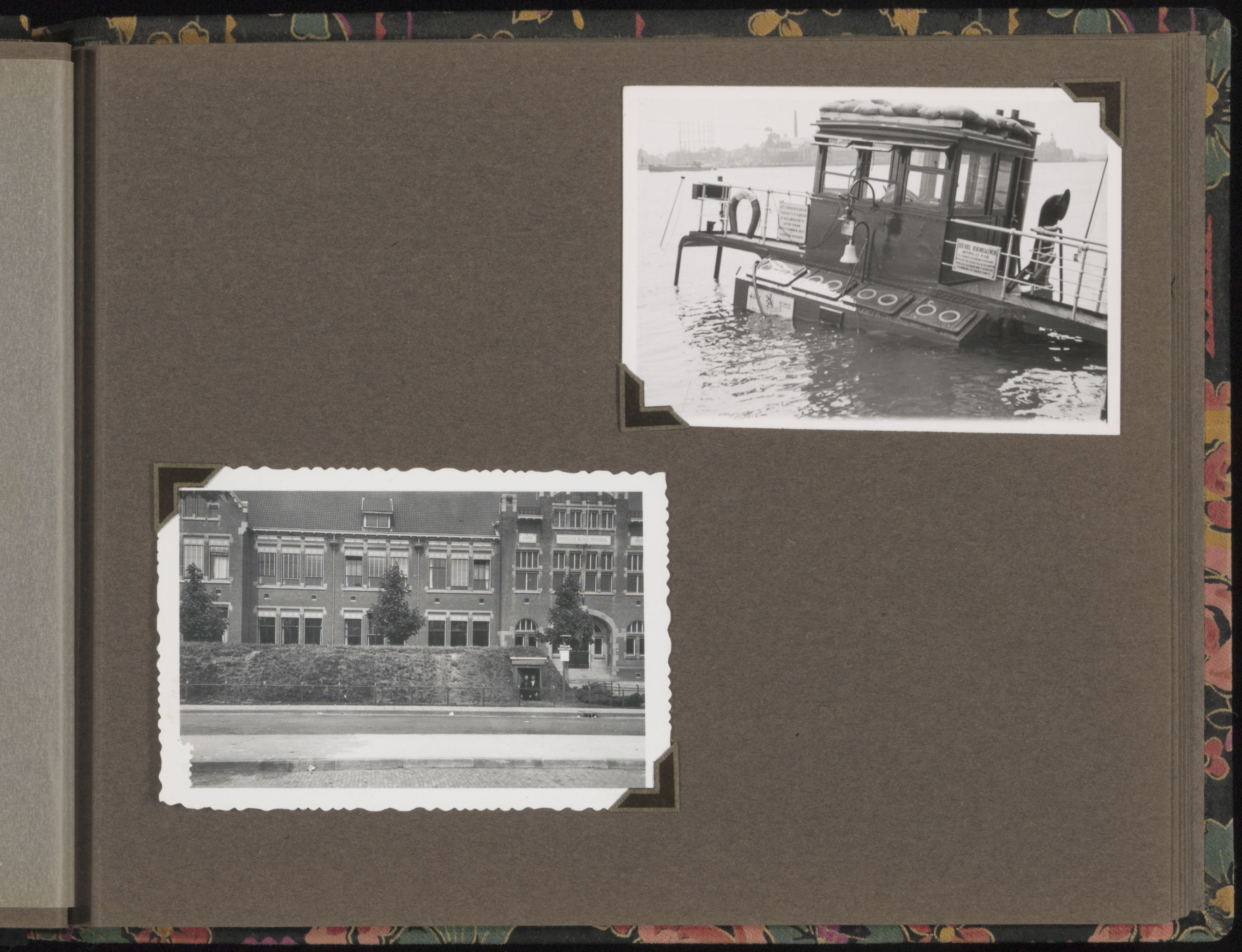 - Boven: een van de twee veerboten van de dienst Dordrecht - Papendrecht die op 14 mei 1940 door terugtrekkende Nederlandse militairen bij de Papendrechtse oever van de Beneden Merwede tot zinken werden gebracht; het dak van de kajuit is bedekt met zandzakken; op de achtergrond links een gashouder aan de Bleijenhoek, rechts de Groothoofdstoren. Onder: schuilkelder voor de HBS in het Oranjepark tijdens de meidagen 1940.