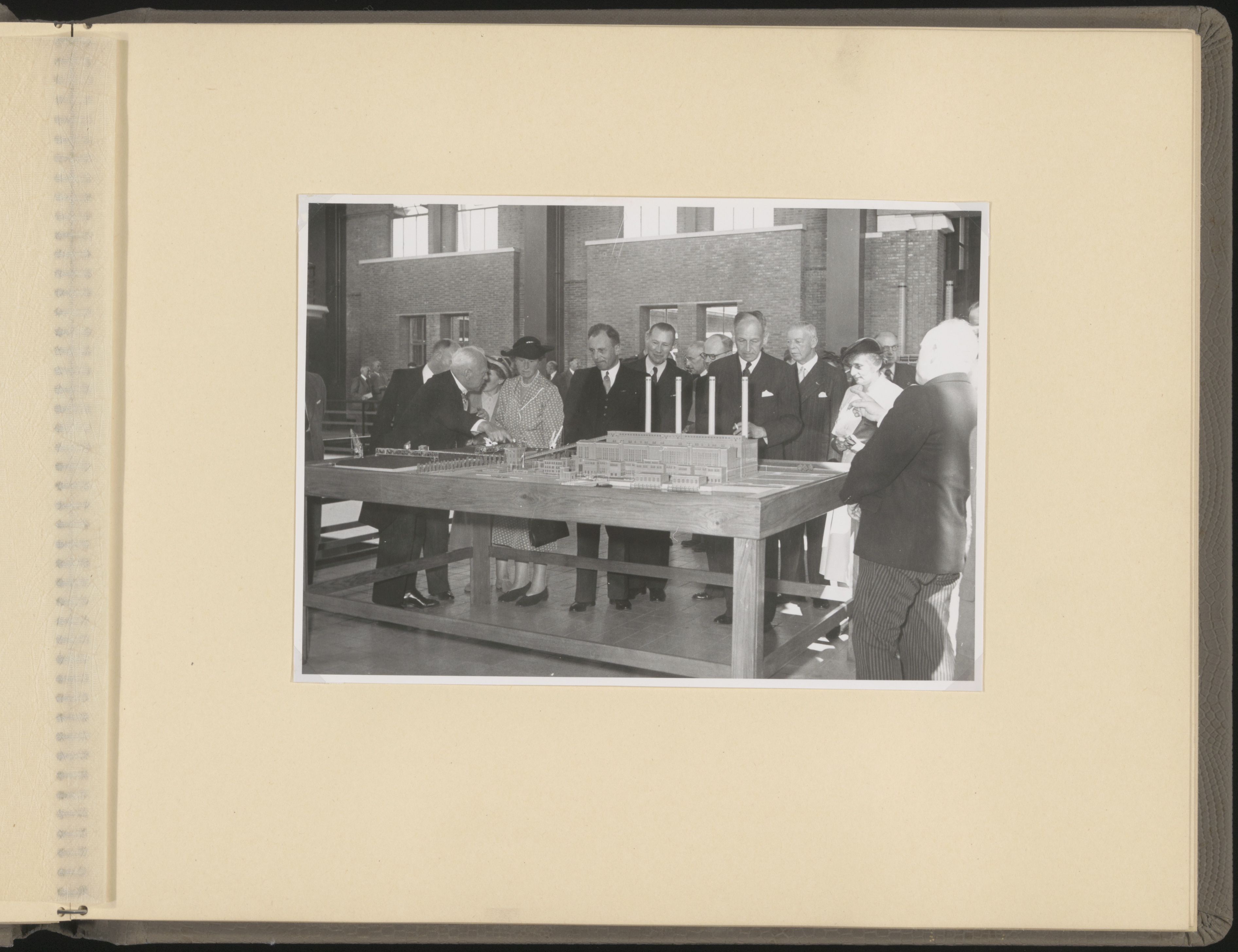 - Aanwezigen bij een maquette tijdens de opening van de Merwedecentrale op de Kerkeplaat.