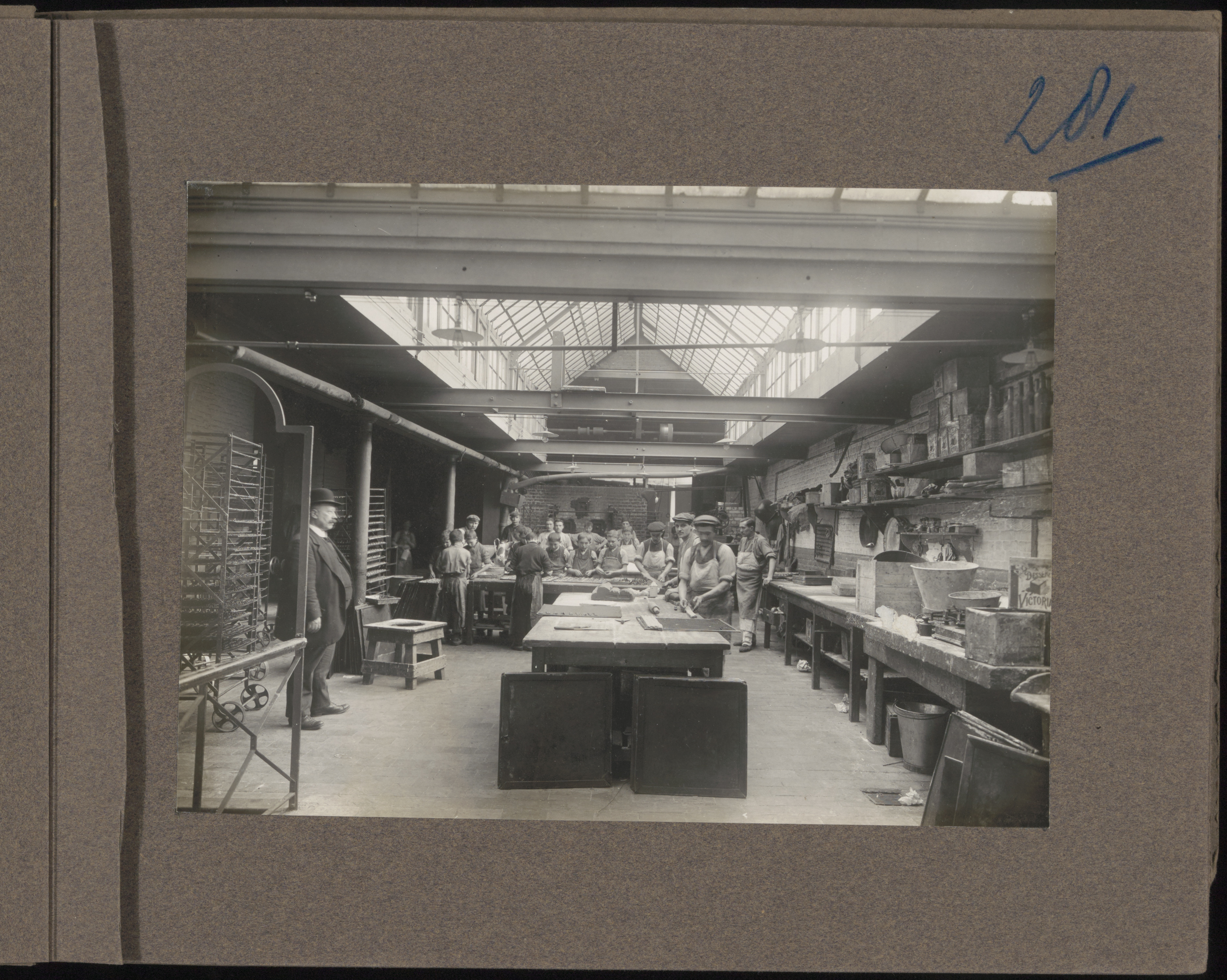 Productiehal in chocolade- en biscuitfabriek Victoria aan de Korte Parallelweg.