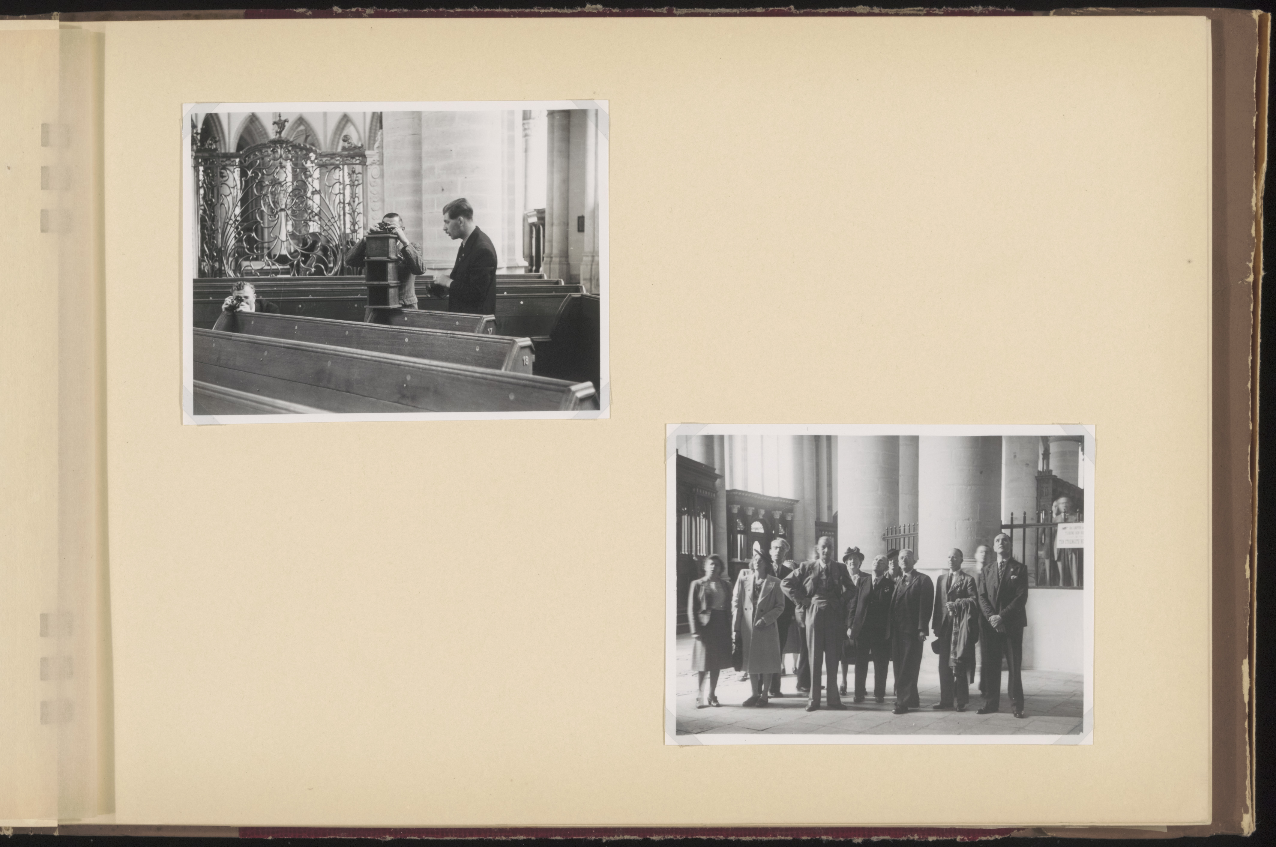 - groepsportretten kerkbanken kerkinterieurs koorhekken