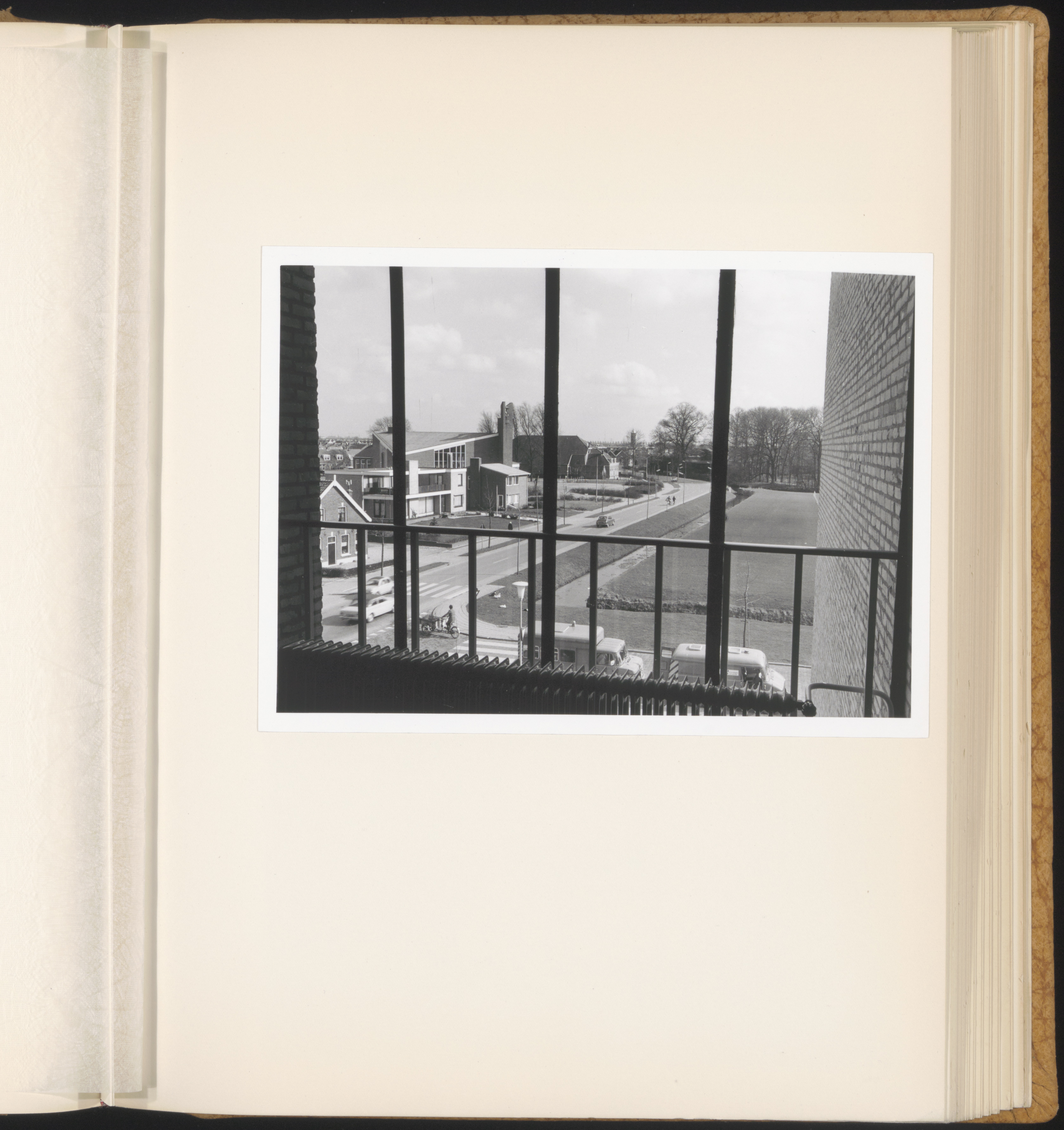 - Zicht vanuit bejaardencentrum De Gravenhorst aan de Vijverlaan op kerk De Wijnstok aan de Dubbelsteynlaan West.