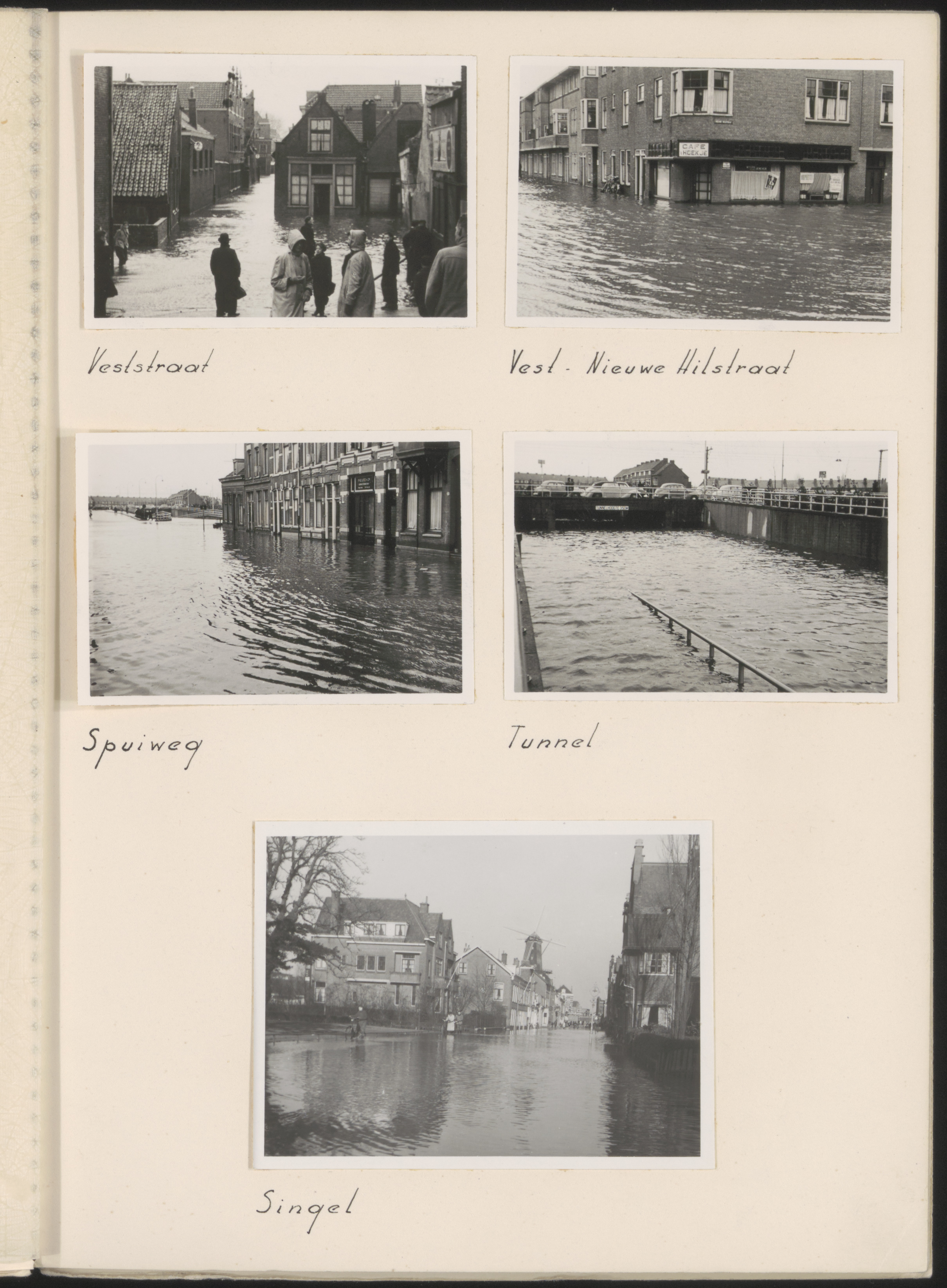 Hoogwater tijdens de watersnood: Veststraat, Vest, Nieuwe Hilstraat, Spuiweg, …