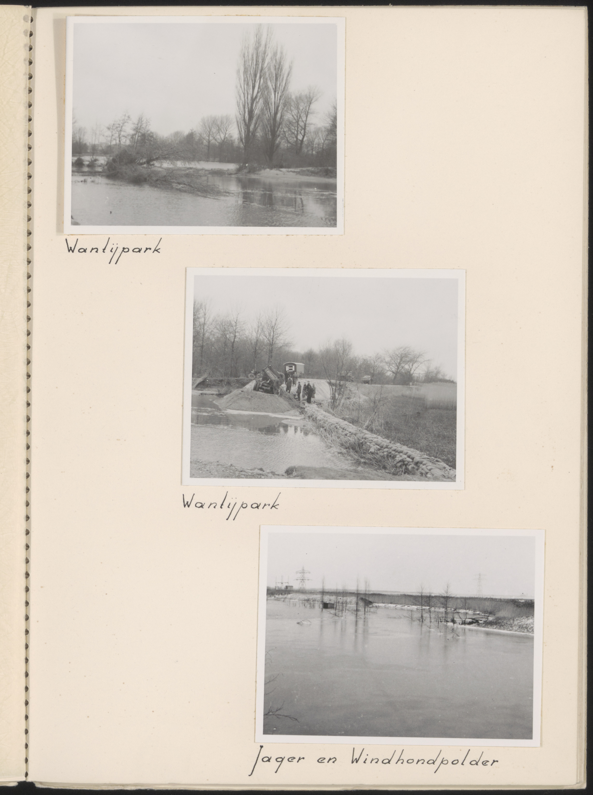 Hoogwater tijdens de watersnood: Wantijpark en Jagers- en Windhondpolder.