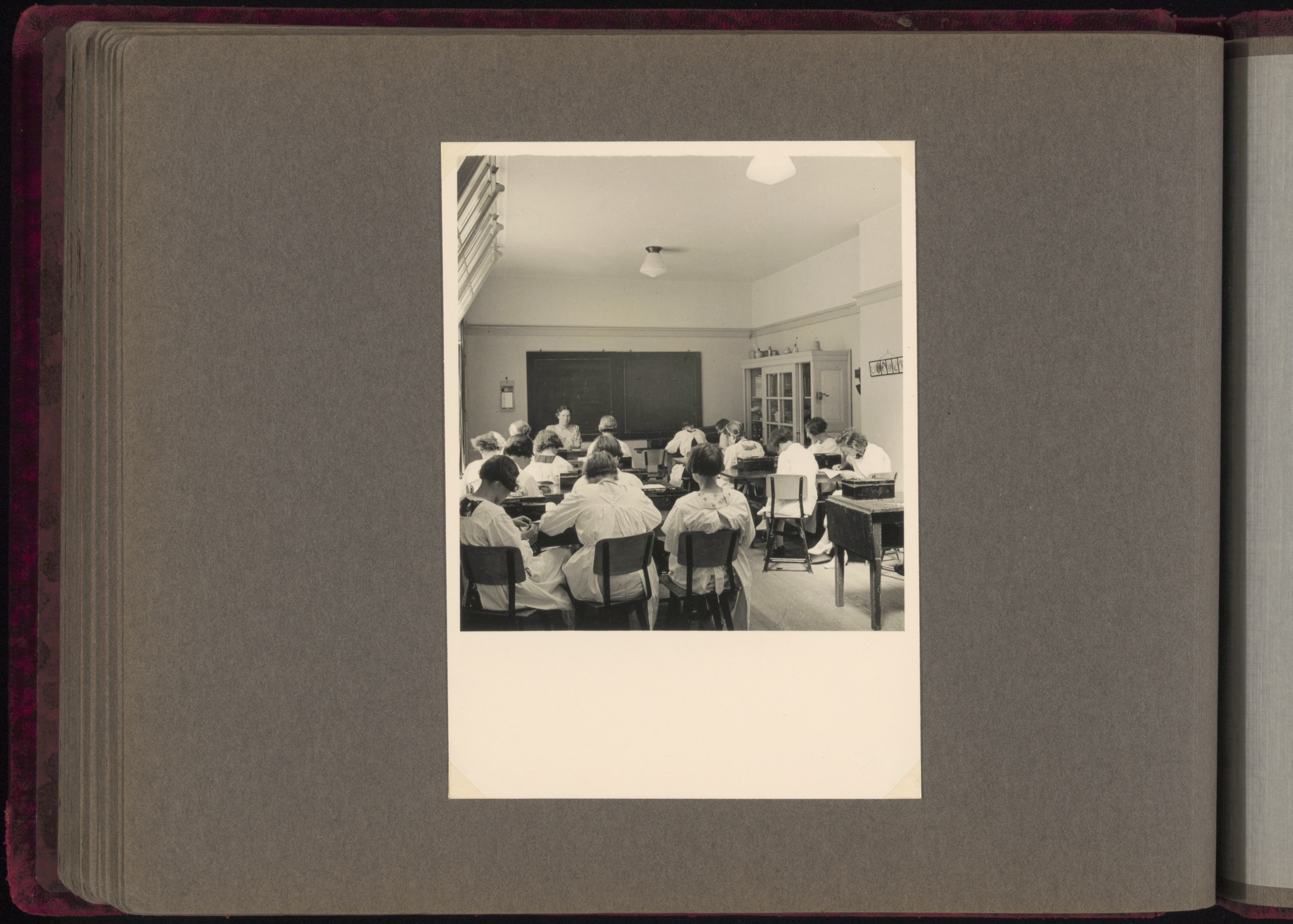 Naailes op Industrie- en Huishoudschool Doelesteyn aan het Steegoversloot.