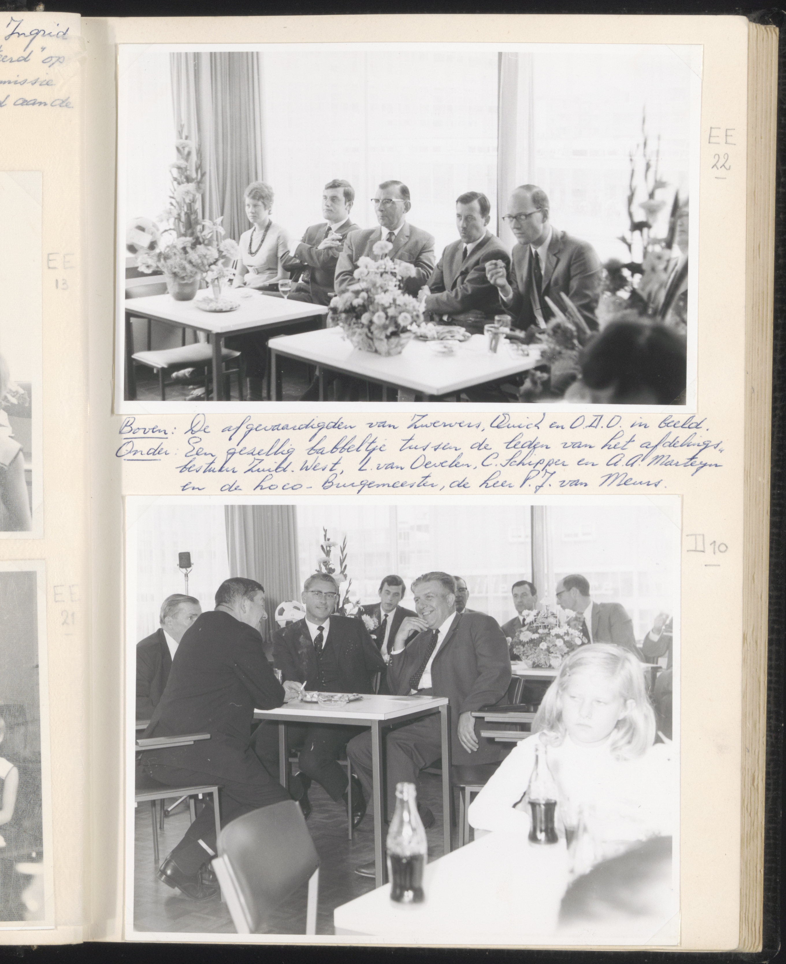 - Boven: Afgevaardigden van Zwervers, Quick en ODO op de receptie t.g.v. het 40-jarig bestaan van korfbalvereniging De Regenboog in activiteitencentrum Crabbehof. Onder: L. van Oevelen, C. Schipper en A.A. Marteyn in gesprek met wethouder Van Meurs.