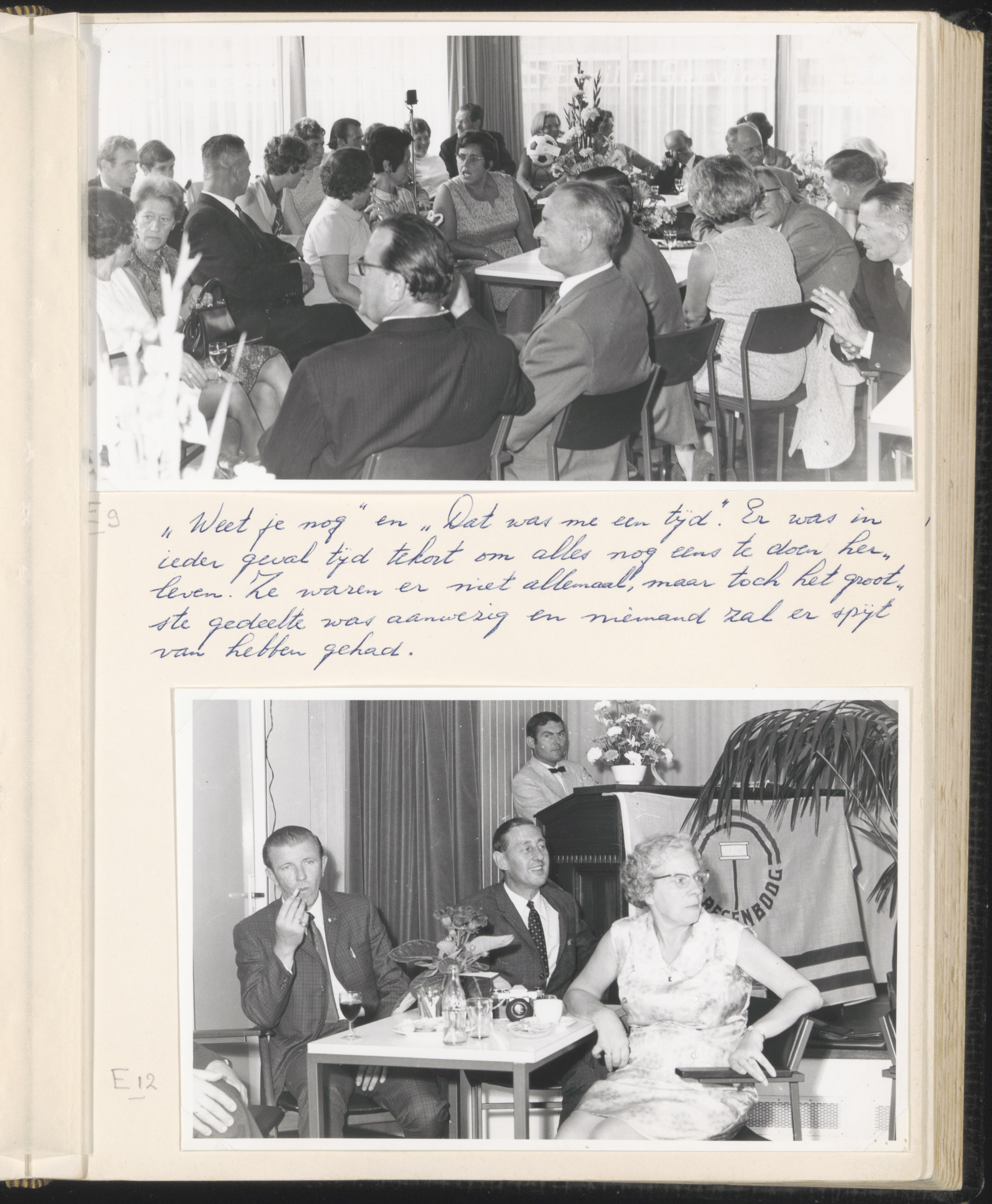 - Oud-leden van korfbalvereniging De Regenboog tijdens de reünie in activiteitencentrum Crabbehof t.g.v. het 40-jarig bestaan. J. Verboom speelt op het hammondorgel.