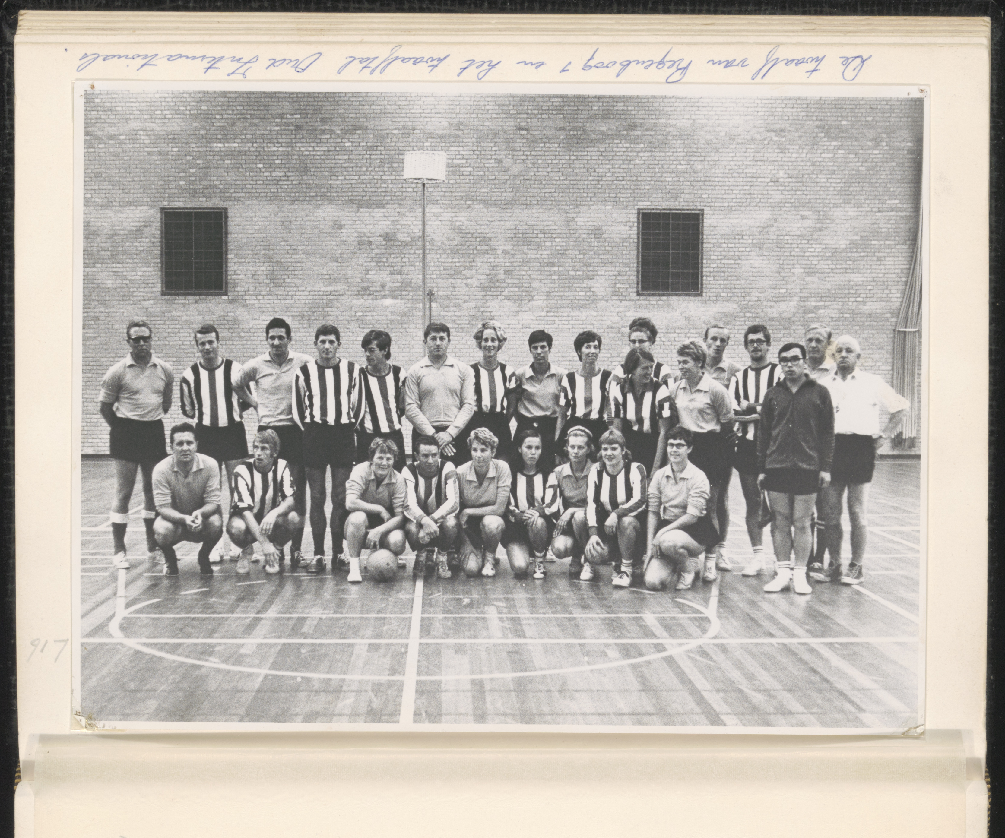 - Oud-internationals en het 1e team van De Regenboog op de slotdag van de viering van het 40-jarig bestaan van korfbalvereniging De Regenboog in Sporthal Wielwijk.
