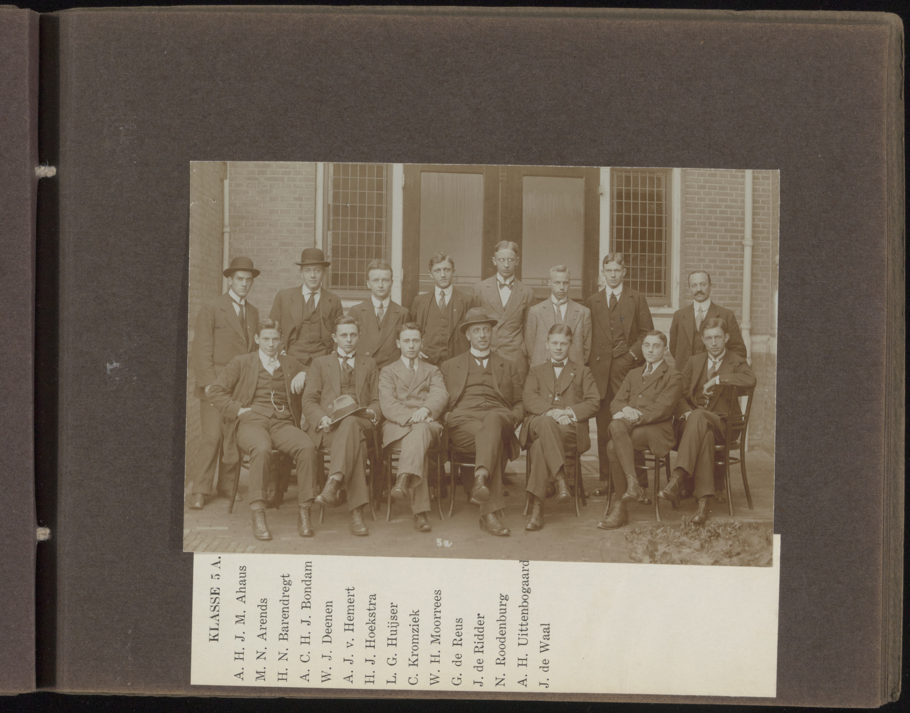 - Klas 5A van de HBS in het leerjaar 1916-1917.