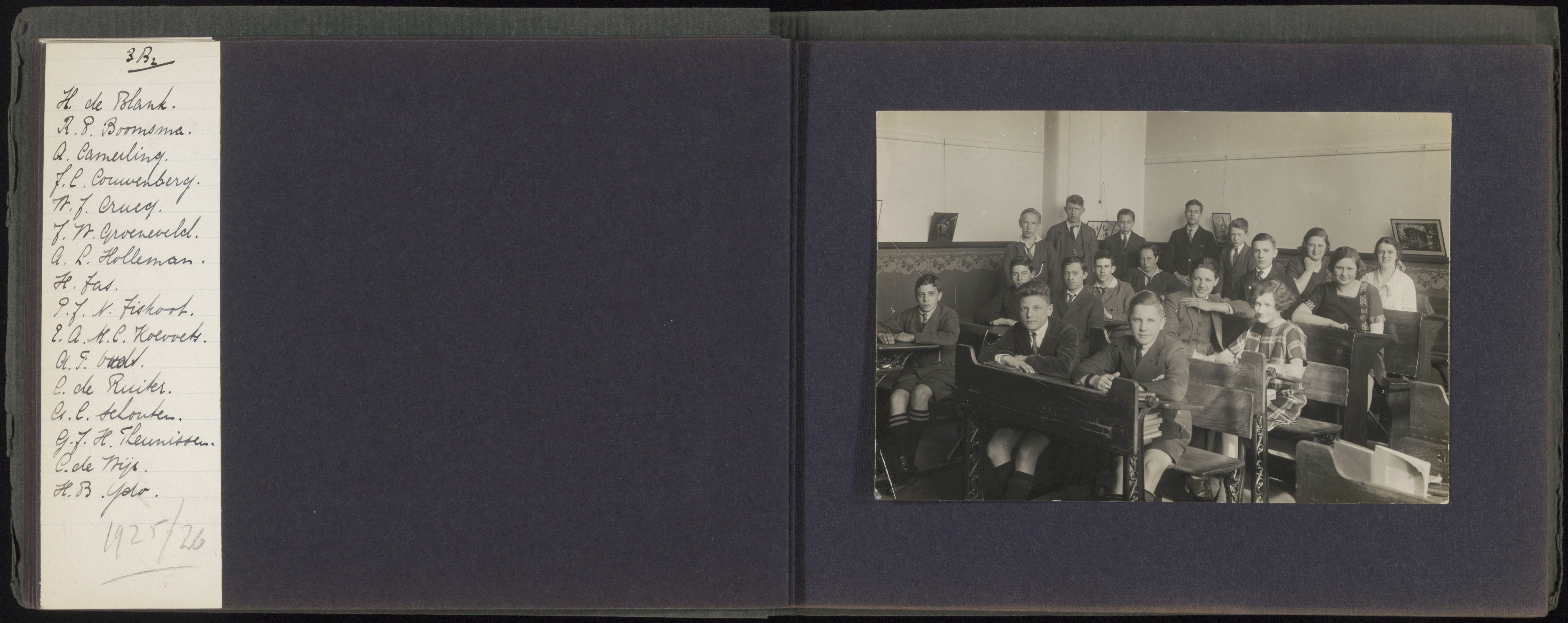 - Klas 3B/2 van de HBS in het leerjaar 1925-1926.