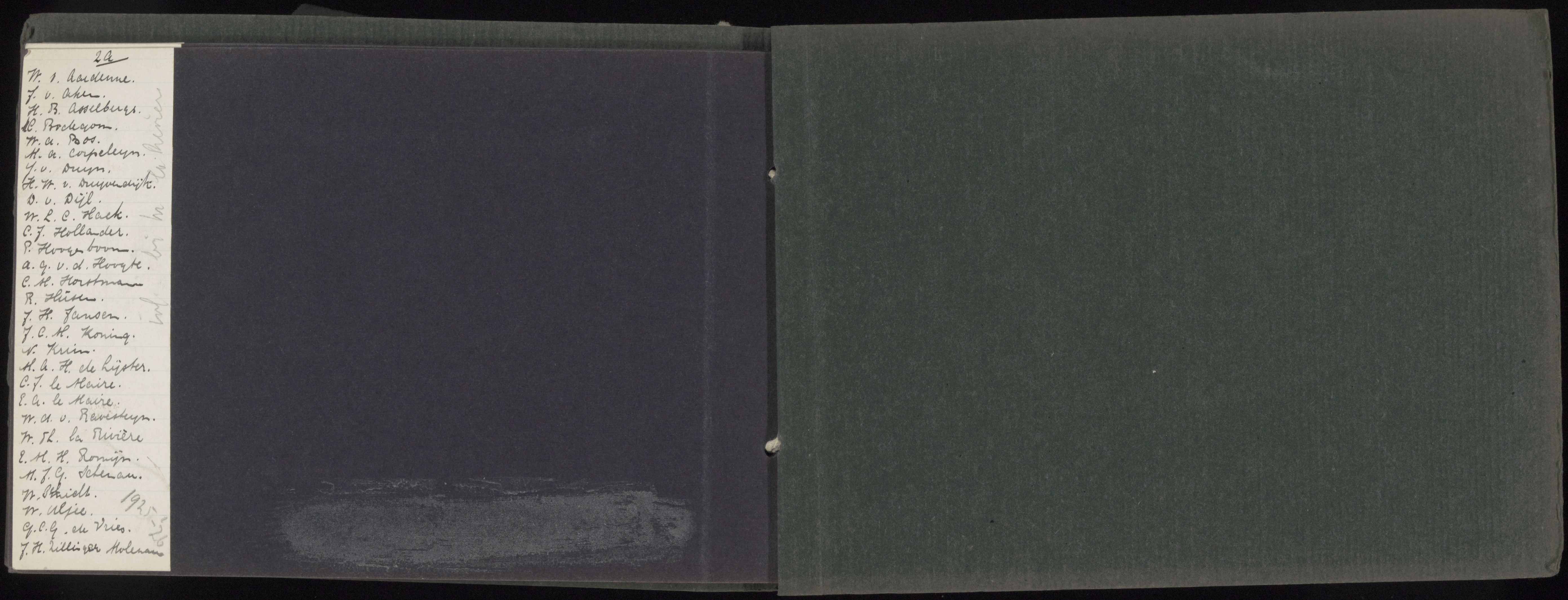 Namenlijst in het fotoboek van klas 2A van de HBS in het leerjaar 1925-1926.