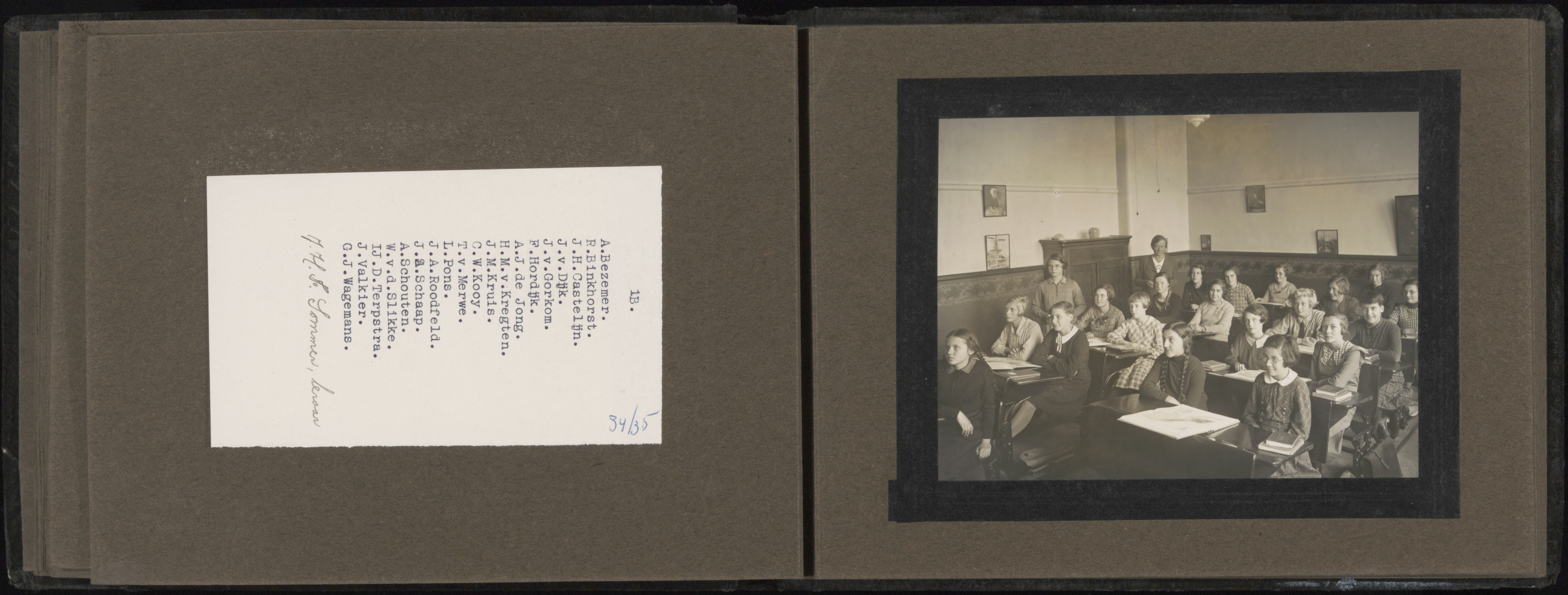 - Meisjes uit klas 1A en 1B van de HBS in het leerjaar 1934-1935.