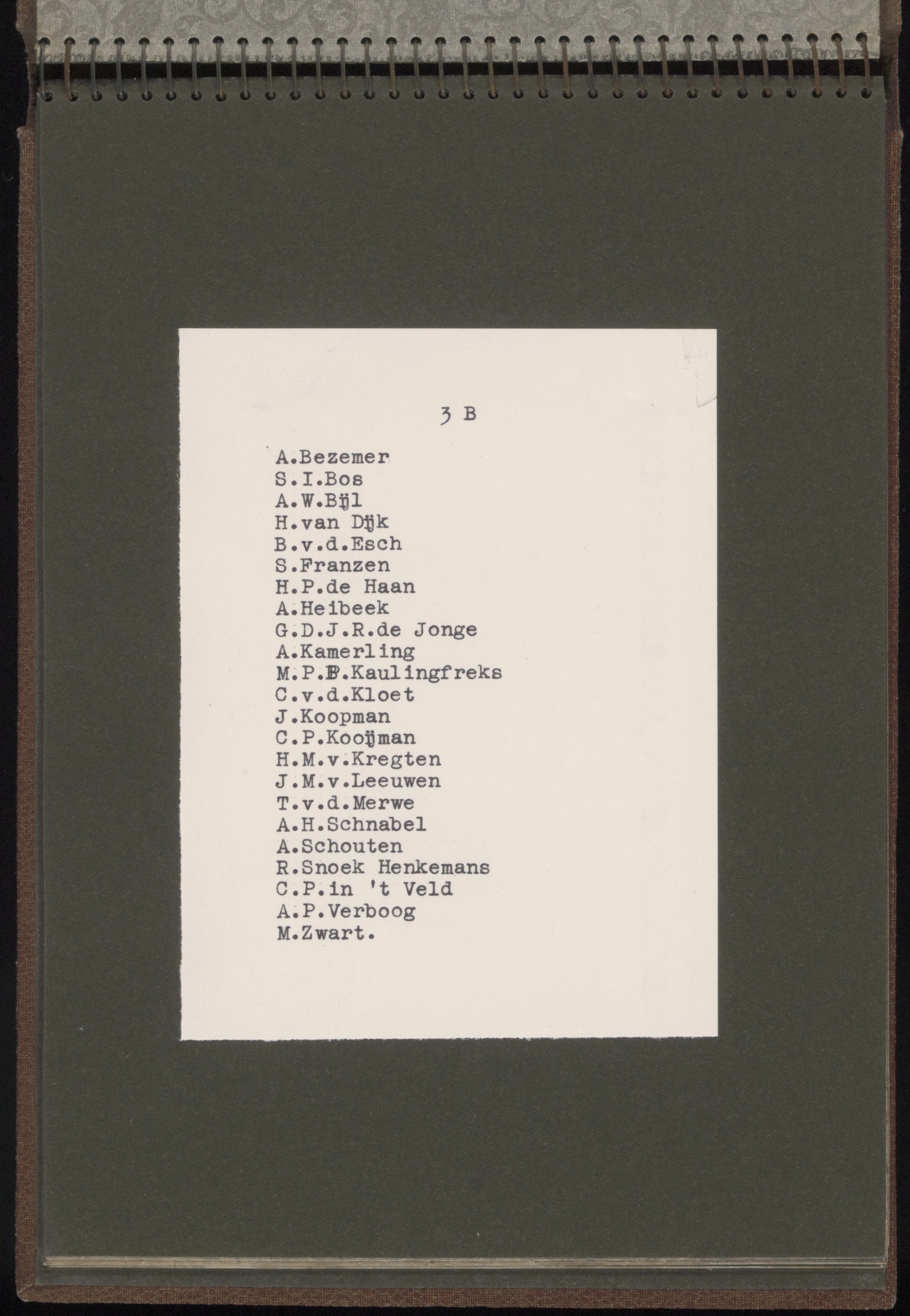 - Namenlijst van leerlingen uit klas 3B van de HBS in het leerjaar 1937-1938.