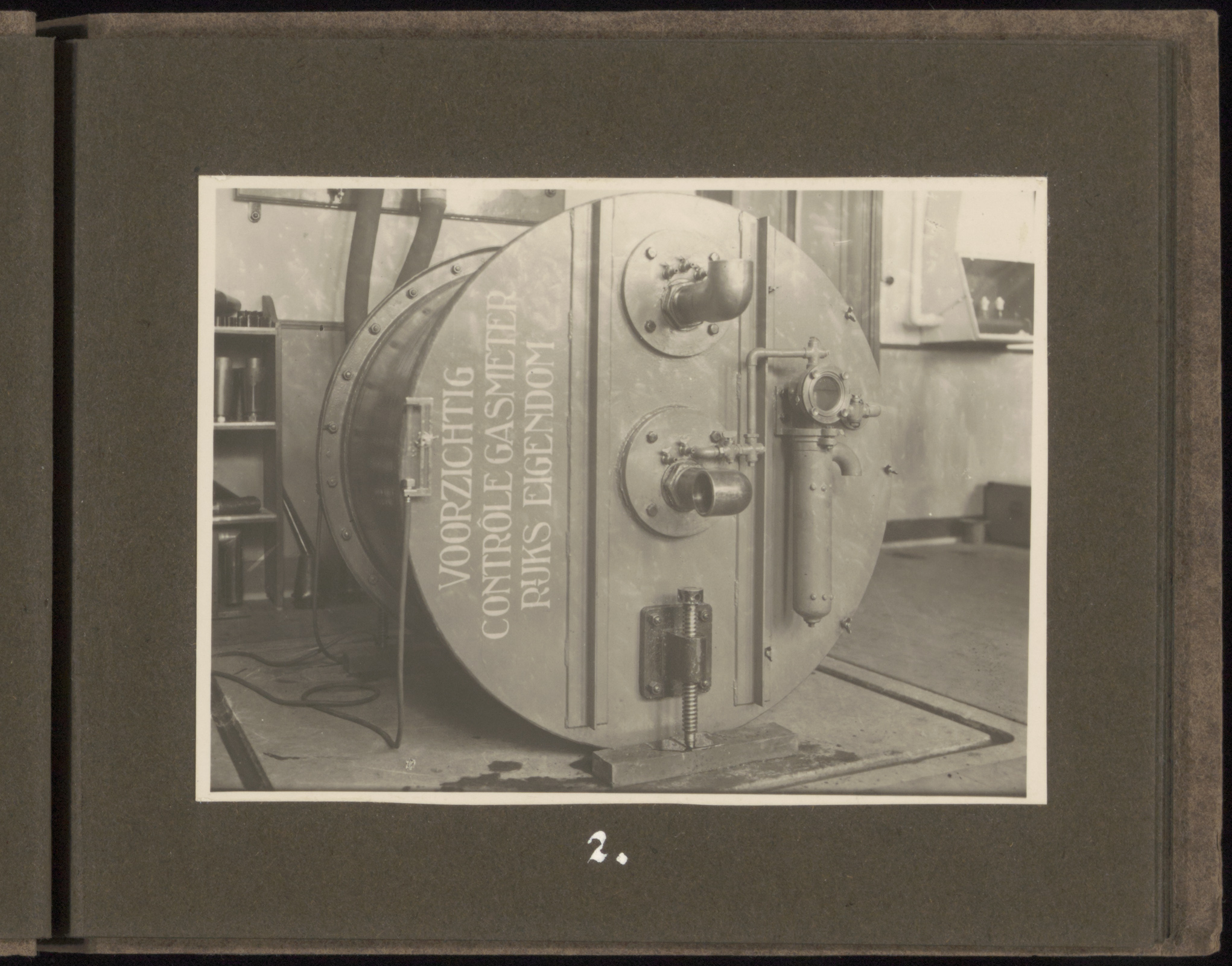 Achteraanzicht van de controlegasmeter in het ijkkantoor aan de Vest tussen de Johan de …