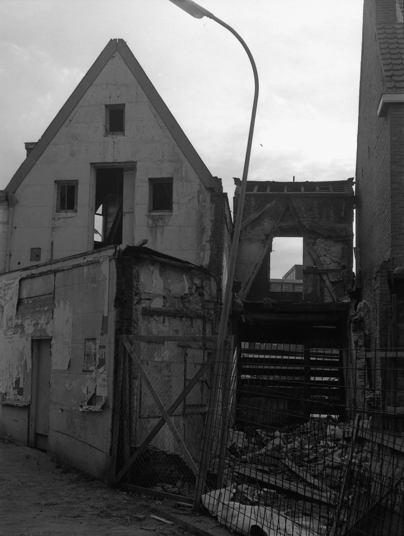 Deze panden hebben het trouwens gered. Had weinig tot niets te maken met de bouwkundige toestand zoals hier te zien is maar eerder gevolg van een andere stedebouwkundige wind. Het is een mooi voorbeeld van het gegeven dat waar de bulldozers van de sanering ooit stopten nu keurig opgeknapte buurten beginnen. Het had zomaar ook een huizenblok verder kunnen zijn.