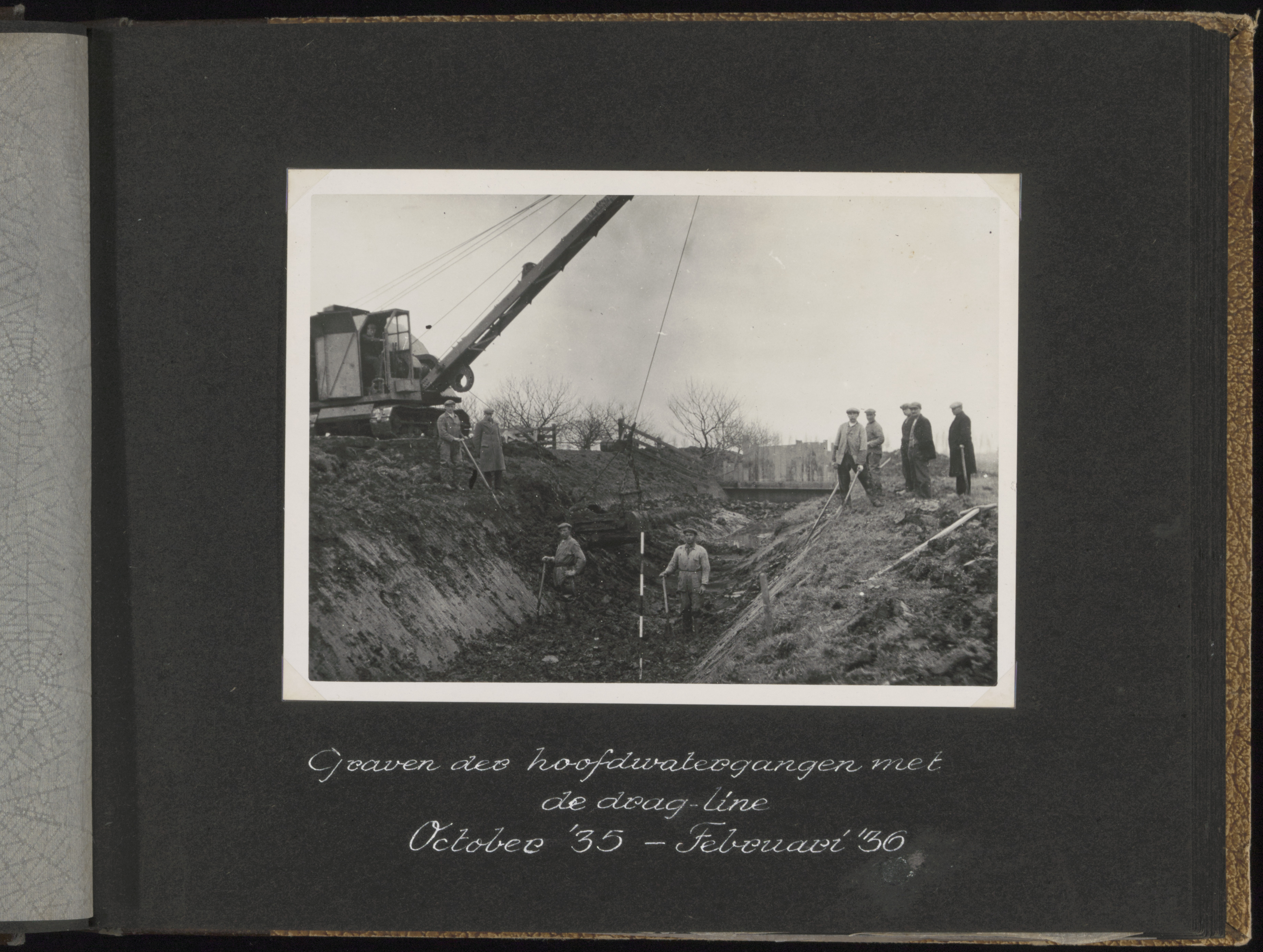 Graven van watergangen bij de bouw van gemaal Overwater in Strijen.