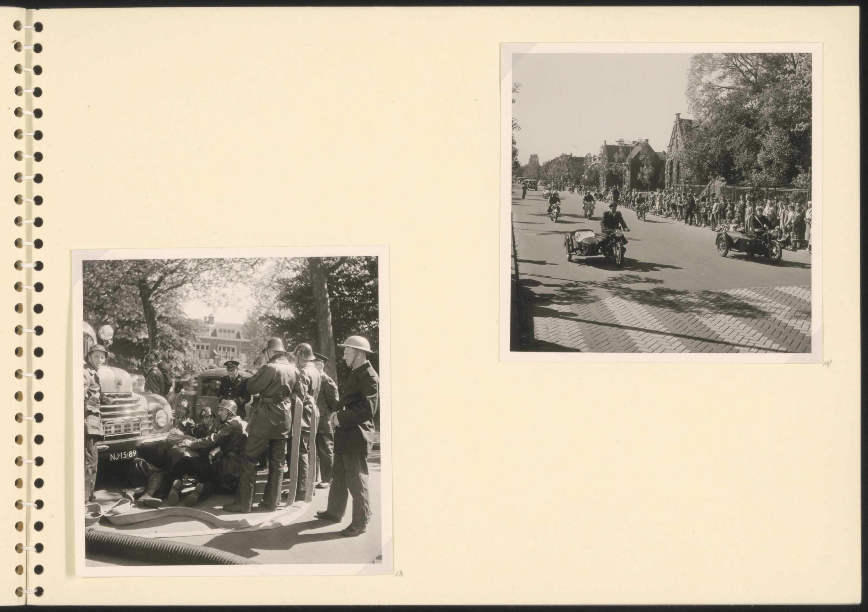 - Links: Oefening van de BB. Rechts: Optocht op Reeweg Oost ter hoogte van de RK begraafplaats tijdens oefening en demonstratie van de BB
