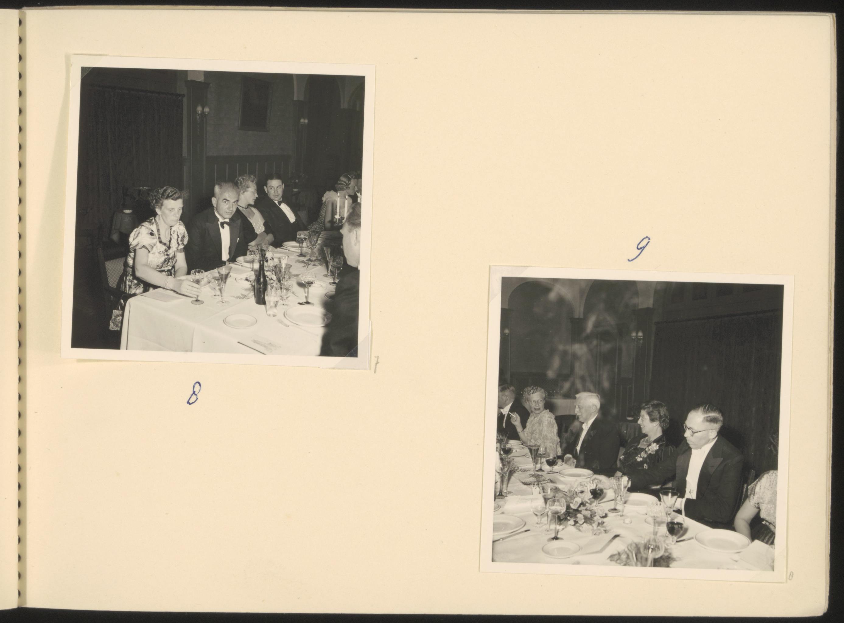 - Enkele deelnemers aan het diner t.g.v. het afscheid van huisarts J.A. Delhez. Boven v.l.n.r. mw. Wagenaar, B. van Dijk, mw. Hiddema, Jhr. A.G. Bicker. Onder v.l.n.r. mw. J.A.S. Branbergen-de Niet, W.J. Assies, mej. A.W. Vos, H.A. van Zwijndregt.