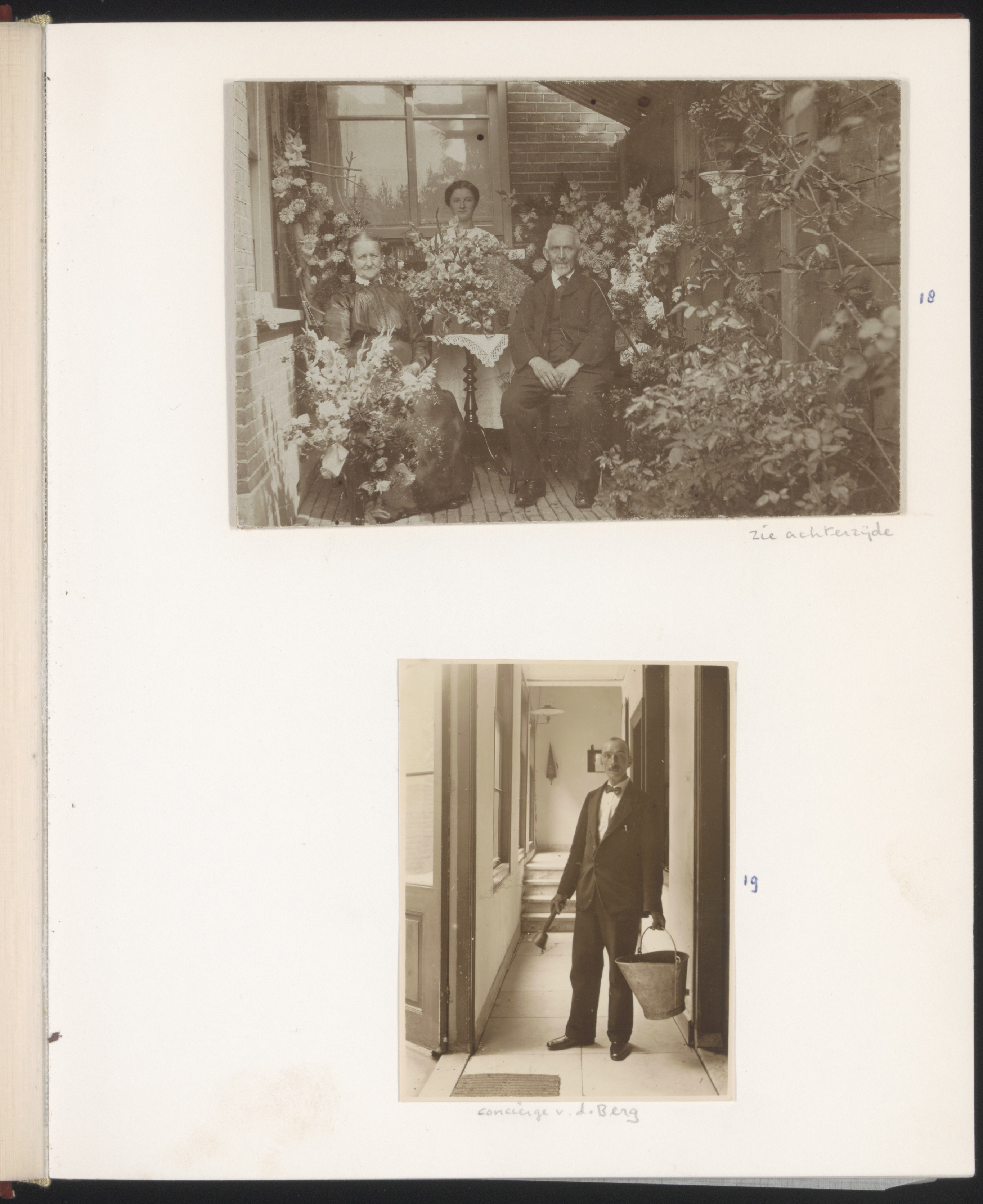 - Boven: onbekend. Onder: Conciërge Van de Berg van de Middelbare Meisjesschool in het Steegoversloot.